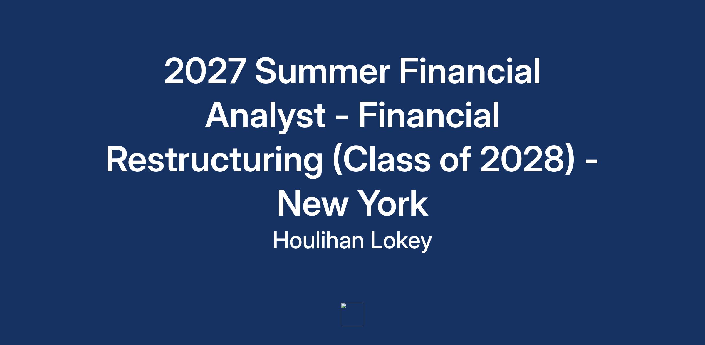 Summer Financial Analysts in Financial Restructuring will work on a variety of transactions within the Financial Restructuring business, including creditor- and debtor-side restructurings, liability management, capital solutions and distressed M&A. The group offers a unique opportunity to work on a variety of projects that provide exposure to various financial advisory and investment banking products and industries. These services include in and out of court restructurings, debt and equity financings, exchange offers and tenders, distressed M&A advisory services, and special situations transactions. The environment at Houlihan Lokey is aggressive and entrepreneurial and, as such, rewards Summer Financial Analysts with substantial responsibility.
