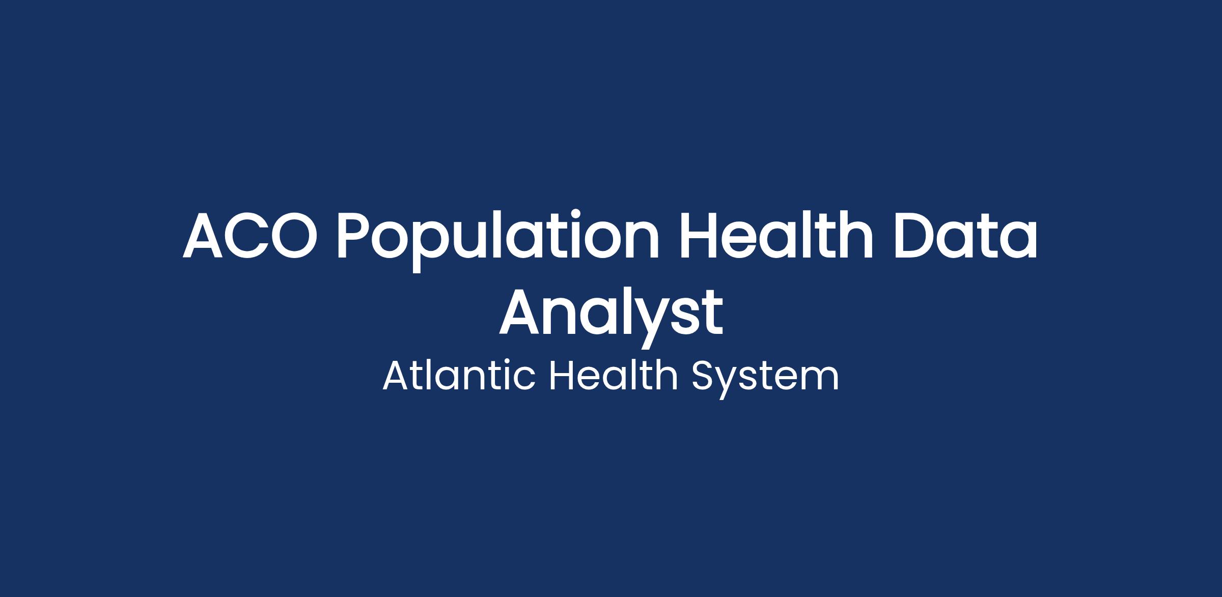 DescriptionThe Population Health Data Analyst (PHDA) is responsible for performing the analytic needs of the Atlantic Healthโs Accountable Care Organizations (ACO).