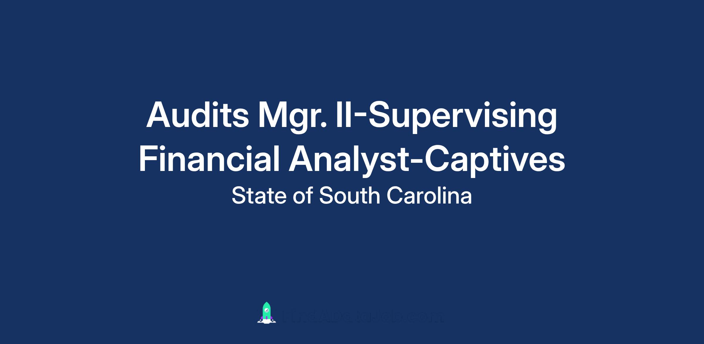 IF YOU APPLIED ON A PREVIOUS POSTING FOR A CAPTIVES SUPERVISING FINANCIAL ANALYST,WITH THE SC DEPARTMENT OF INSURANCE, PLEASE DO NOT RE-APPLY. WE HAVE YOUR APPLICATION ON FILE.