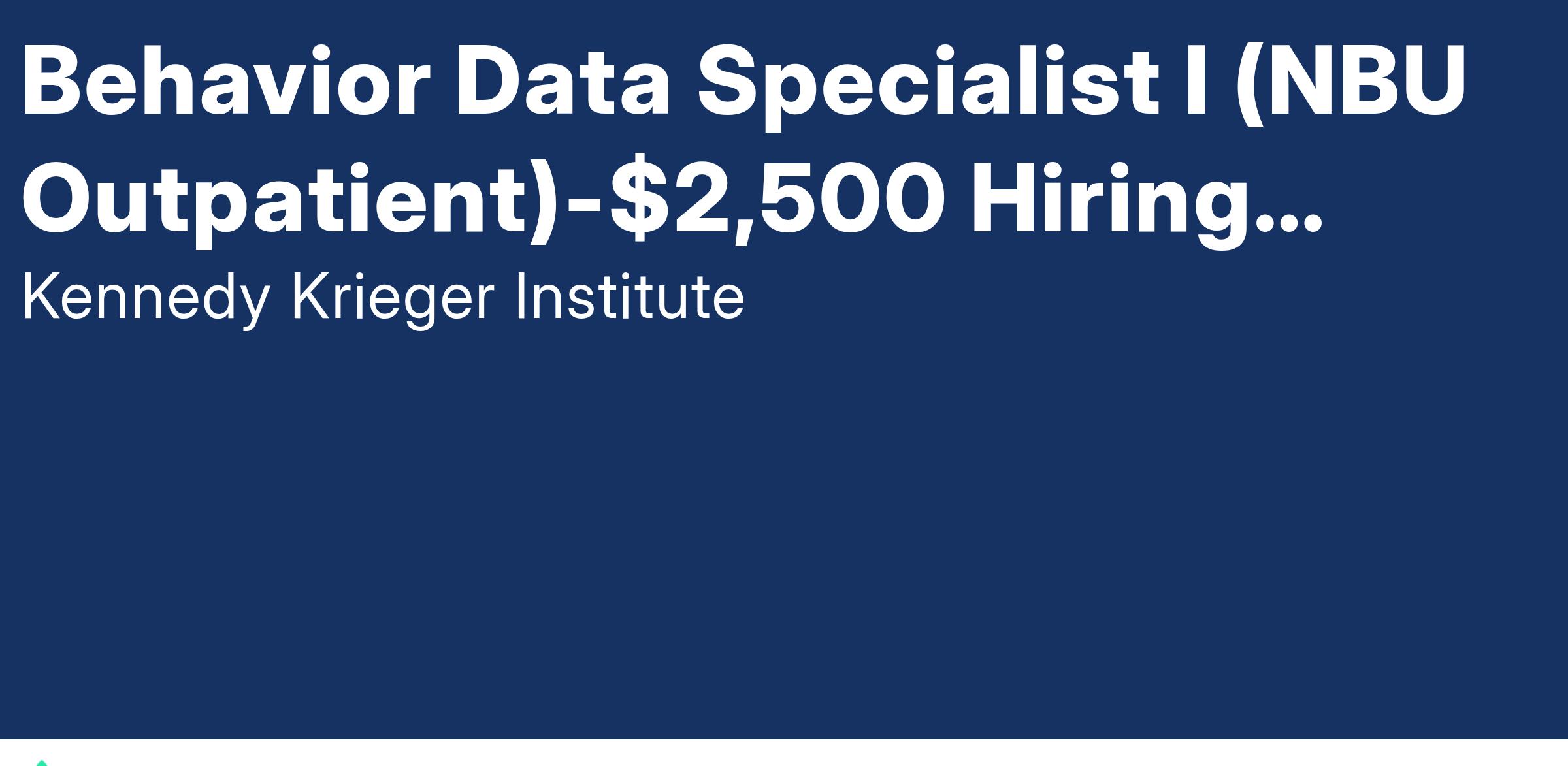 Kennedy Krieger Institute offers excellent benefits including medical, dental, vision, 401K with match, tuition reimbursement, free parking and childcare subsidies!Β In addition, we offer rich professional development opportunities.Β Β