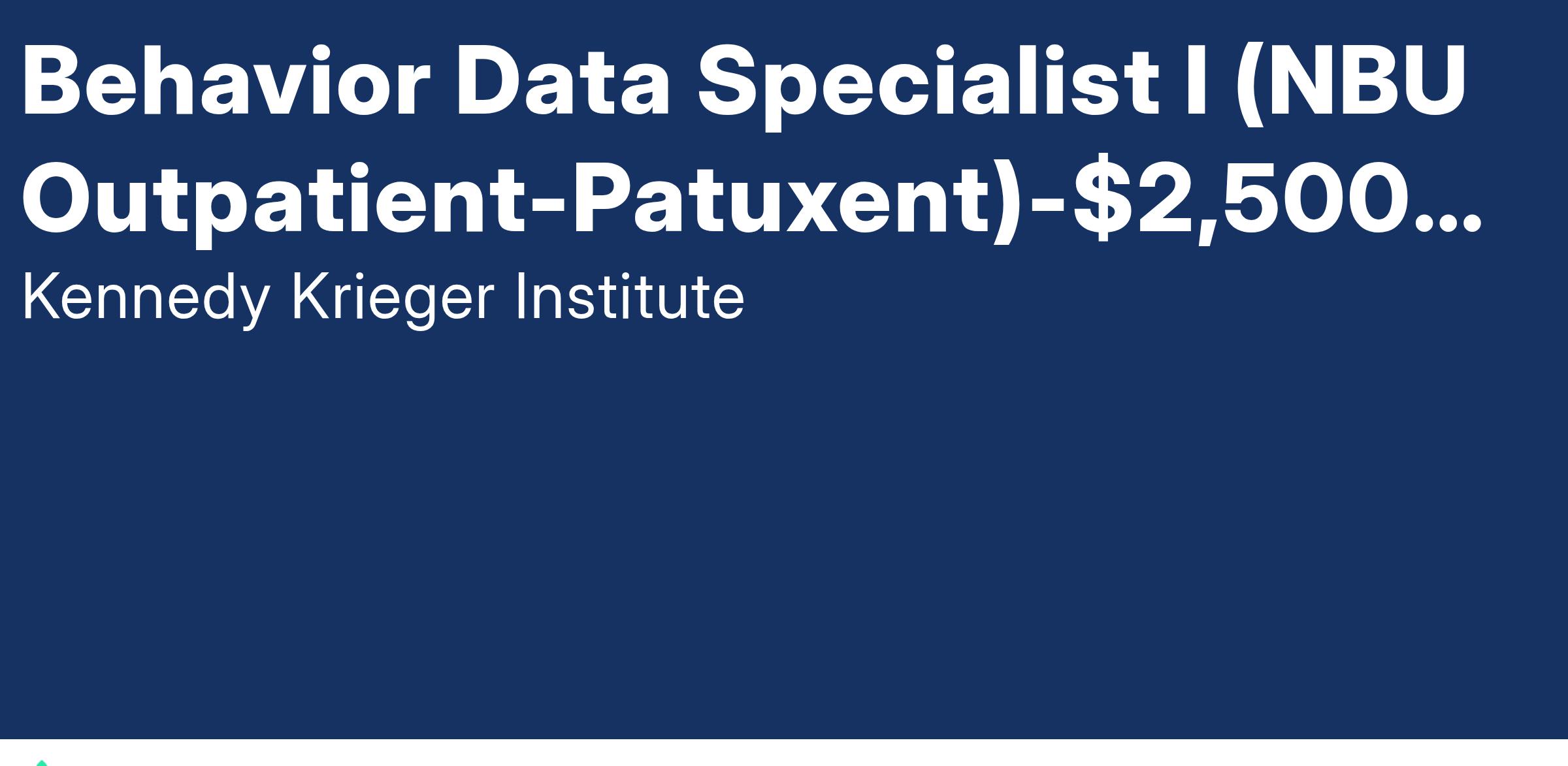 Kennedy Krieger Institute offers excellent benefits including medical, dental, vision, 401K with match, tuition reimbursement, free parking and childcare subsidies!Β In addition, we offer rich professional development opportunities.Β Β
