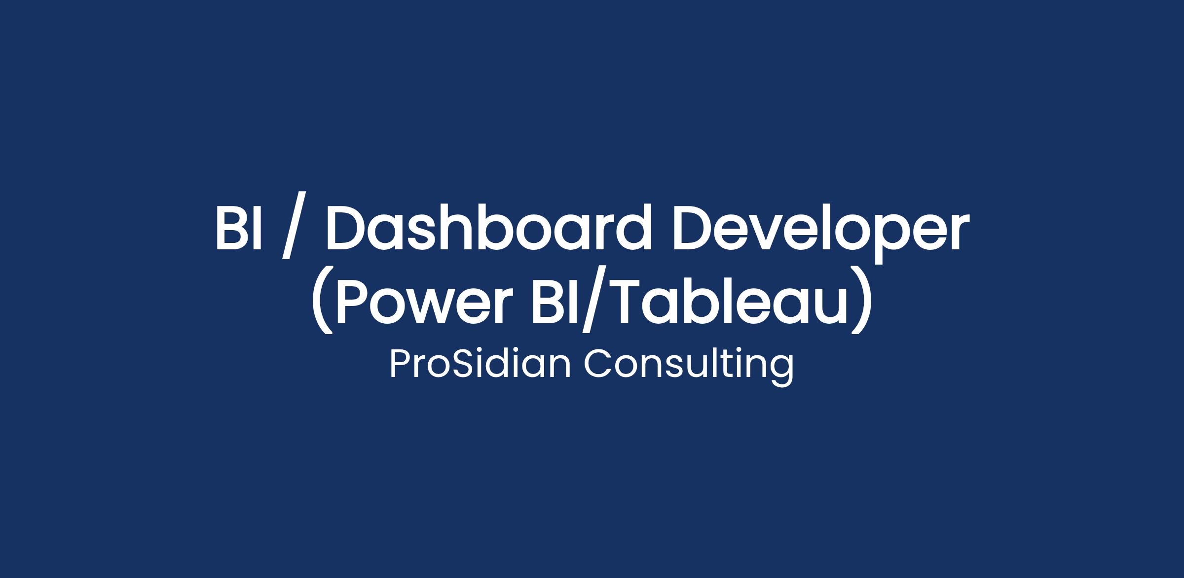ProSidian Seeks a BI / Dashboard Developer (Power BI/Tableau) | Human Capital Programmatic Evaluation & Compliance - Workforce Planning & Human Capital Analyticsย [NSF0087087] for Program Support on a Exempt W2: No Overtime Pay Basis located in the Mid Atlantic Region and listed under a Business Intelligence Analyst Labor Category as a Engagement Team Mid Level Professional aligned under services related to NAICS: 541611 - Management and Financial Consulting, Acquisition and Grants Management Support, and Business Program and Project Management Services - DPLH Est.: 1920 Hrs. ST | 0 Hrs. OT on a Exempt W2: No Overtime Pay Contract Contingent Basis, generally located across the Alexandria, VA (Hybrid) Across The Mid Atlantic Region supporting a Human Capital Analytics & IT Modernization for Federal science agency HR modernization
