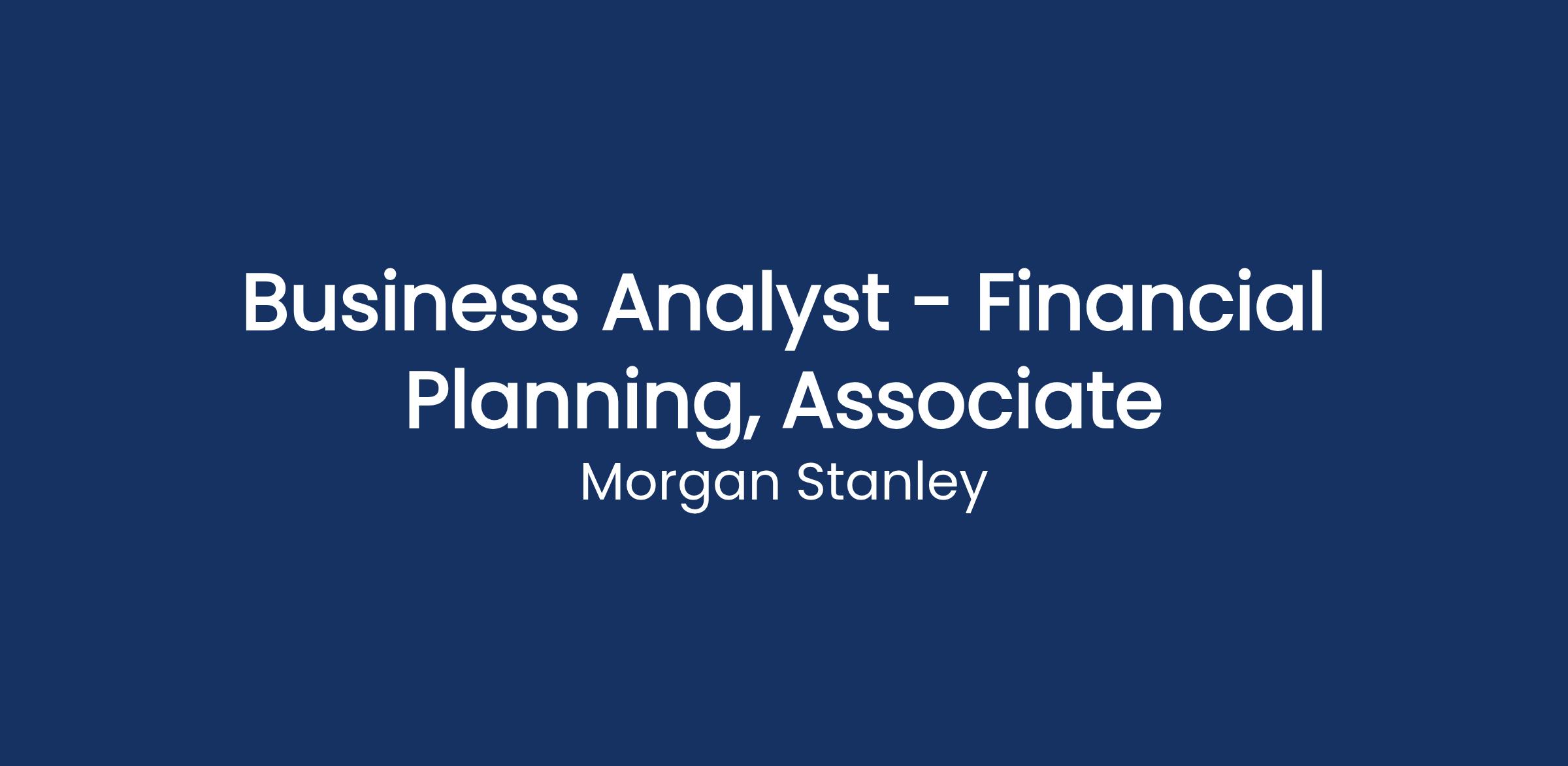 Business Analyst - Financial Planning, Associate