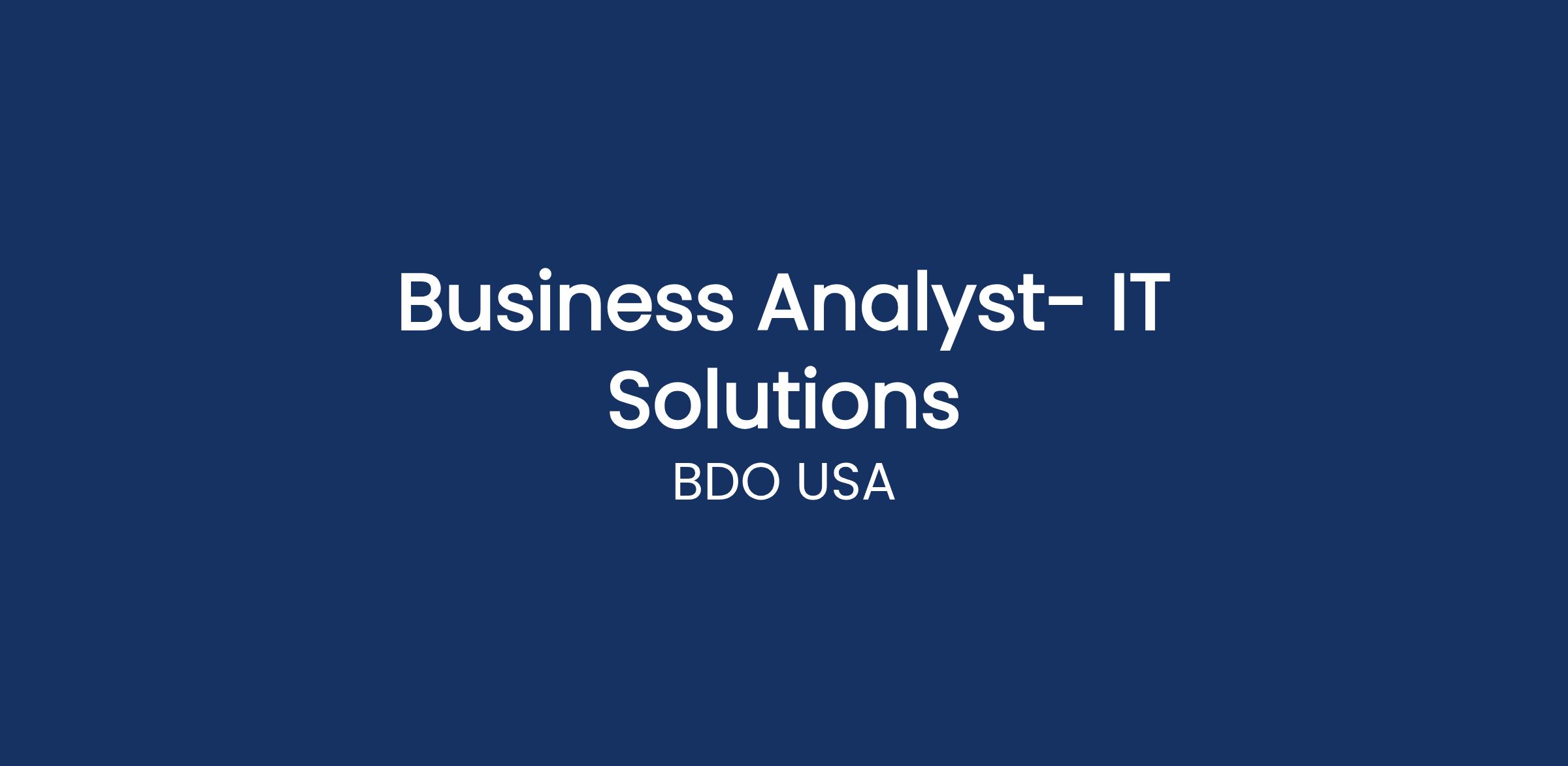 - Two (2) or more years of experience related to Business Analyst or Technical Analyst within an IT technology environment, required