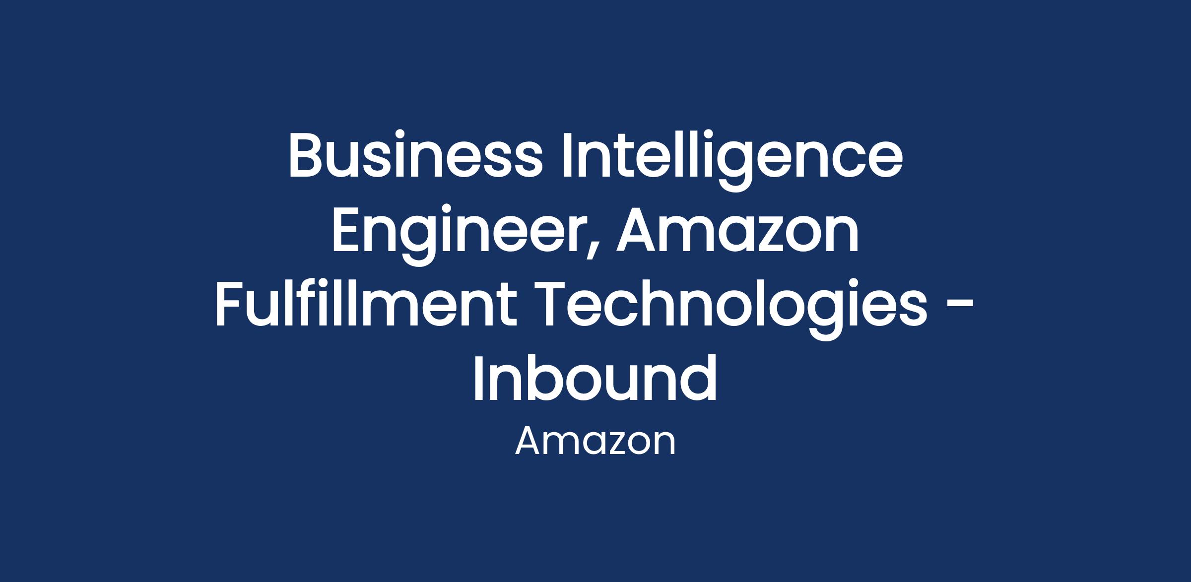 Amazon Fulfillment Technologies (AFT) is seeking an experienced Business Intelligence Engineer who is passionate about building agentic foundational knowledge bases and leveraging data to deliver actionable insight to improve senior level business decision making.