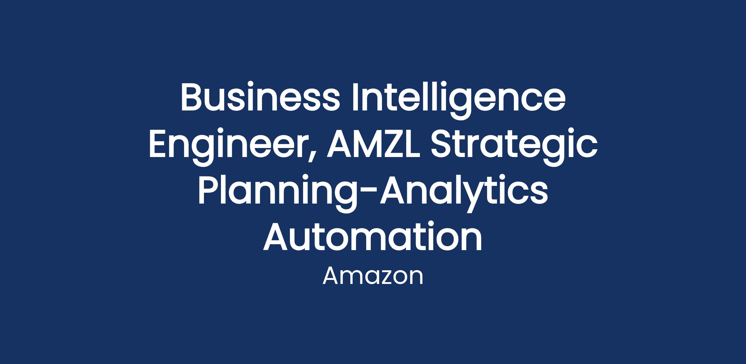 Are you excited to drive high-visibility, strategic Analytics solutions to help streamline Amazon's operations? AMZL Strategic Planning-Analytics Automation is seeking an experienced Business Intelligence Engineer (BIE), to lead the business analytics & automation in partnership with Data Scientists and Engineers (data, process). Our mission is to simplify analytics with innovative data products.