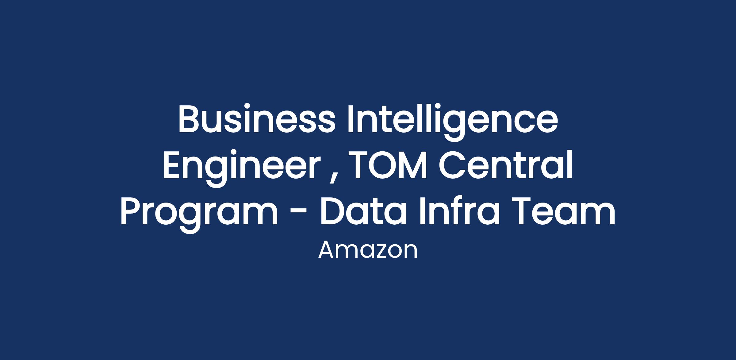 If so, the TOM Central Program Data Infrastructure team is the place for you. We are building the worldβs fastest, most reliable, and lowest-cost transportation networkβgiving customers greater control and visibilityβand we are looking for a top-notch Senior Business Intelligence Engineer to help lead this mission.