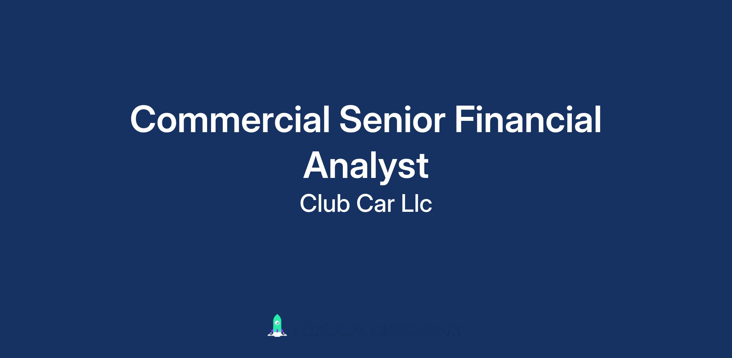 Β The Commercial Senior Financial Analyst is a key member of the Commercial Finance team at Club Car. This role will directly support the Commercial Finance Manager with forecasting, reporting, projects, commercial initiatives, variance analysis and accounting activities related to the Consumer and Commercial Sales and Product Teams.