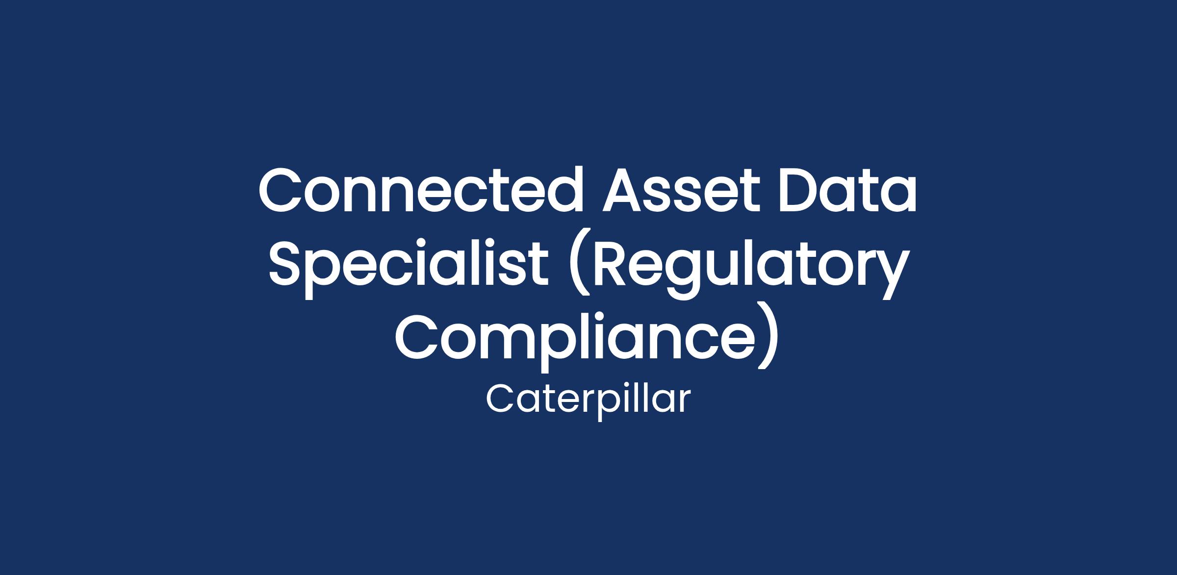 As a Connected Asset Data Specialist β Regulatory Compliance you will contribute to enterprise regulatory compliance by supporting internal product group clients and engaging with various external industry associations. This position provides support for identifying, understanding, and communicating regulatory requirements associated with product data generated by engine, machine, and power system products and their supporting digital applications along with assisting in the identification of other regulatory requirements associated with various types of digital radio devices and telematics. Data is an increasingly important part of Caterpillarβs business model, and this role is critical to reducing business risk. This position will collaborate with other data and digital device specialists in various global regions. You will also be responsible for understanding the regulatory landscape and market access requirements for many different regions around the globe and may require occasional international travel.