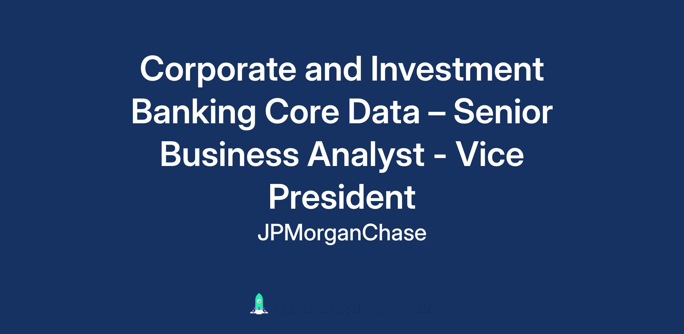 DescriptionThe Corporate and Investment Banking (CIB) Core Data team is a business-focused group dedicated to delivering high-quality, compliant core data that unlocks value for stakeholders. The team oversees the strategy and execution of the firmβs core data agenda, managing key systems of record and data management productsβincluding External Parties, Internal Parties, Taxonomies, Instrument Data (with a strategic focus), and Reference Data as a Service capabilities such as search, identity resolution, and history. By partnering with business leaders, operations, and technology, the team designs and maintains scalable, resilient data architecture to drive measurable business results.