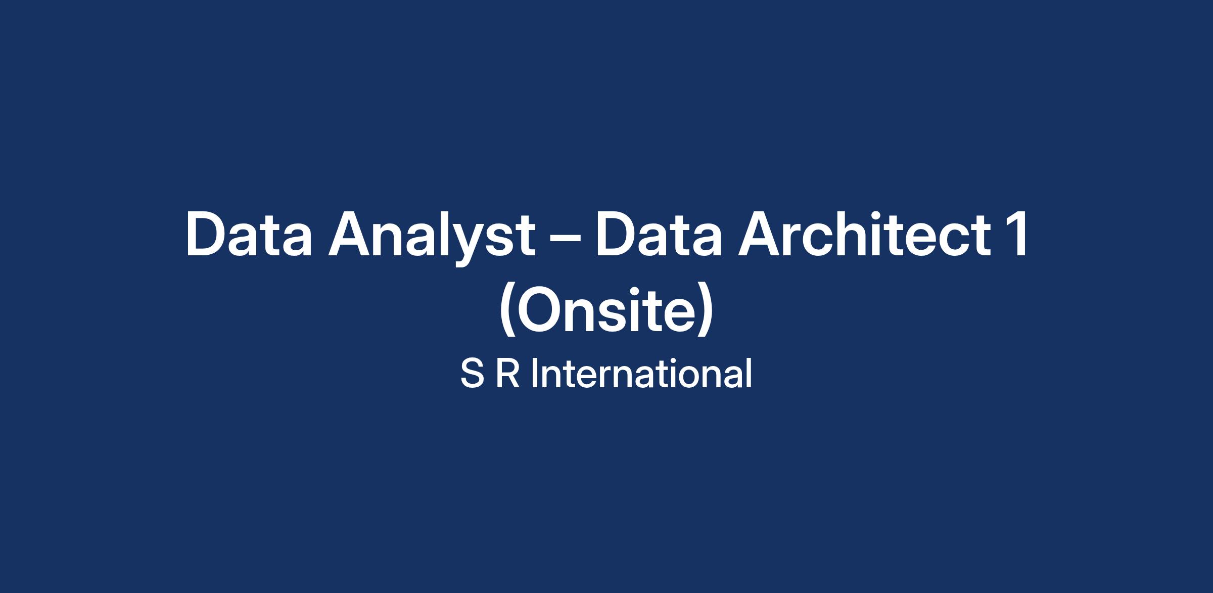 Job Title: FCDC: Data Analyst β Data Architect 1 (Onsite)
