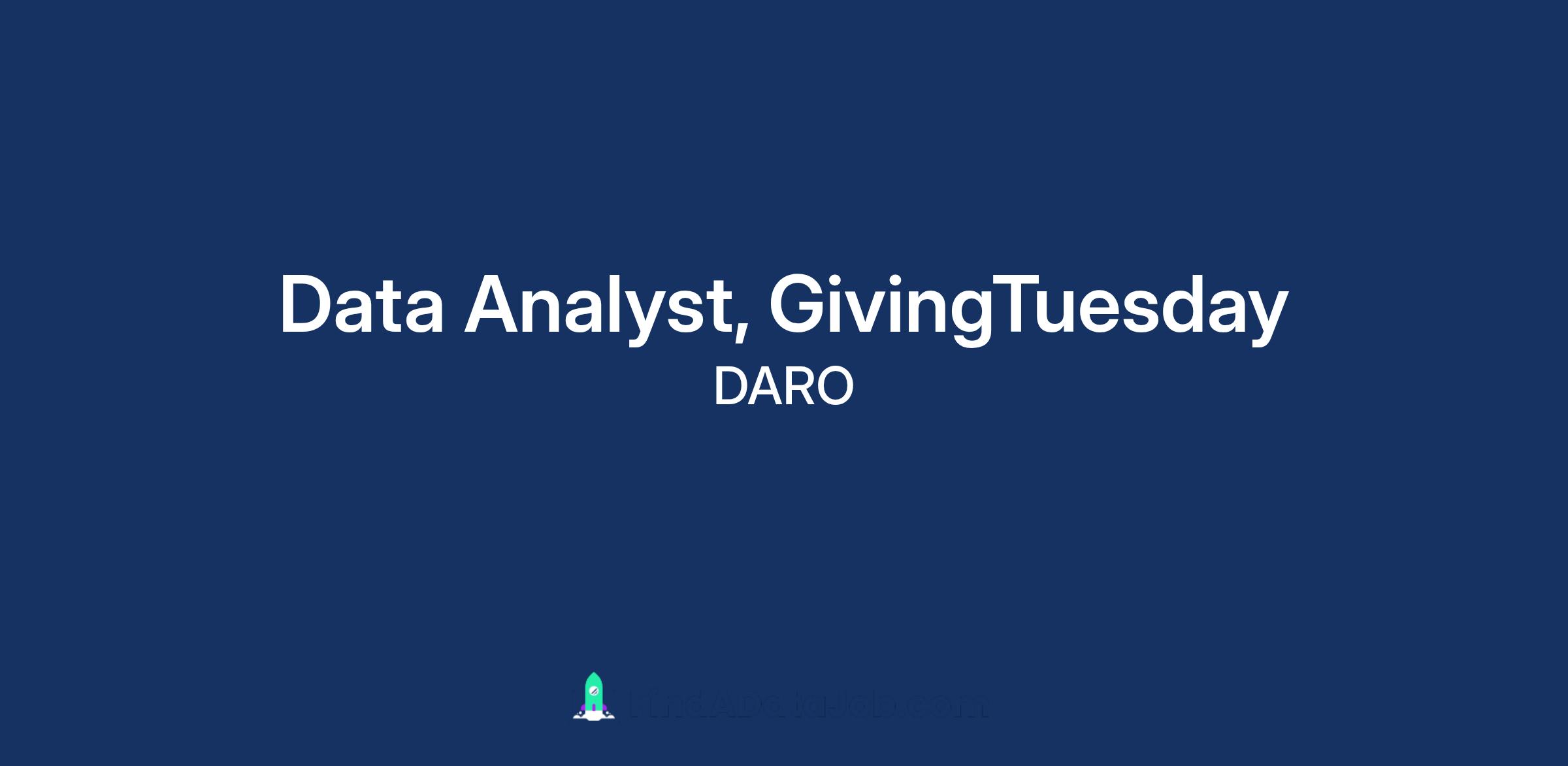 In pursuit of the goals and expansion of the data commons, GivingTuesday partners with key organizations to leverage their expertise to manage and lead different aspects of the work. These data & technology partners (DARO, With Intent) manage staff, projects, and ongoing functions for the data commons with dedicated staff embedded in GivingTuesday in those capacities in cross-functional roles. This role is one of these positions - managed by our partner organizations but embedded in GivingTuesdayβs Data Team.