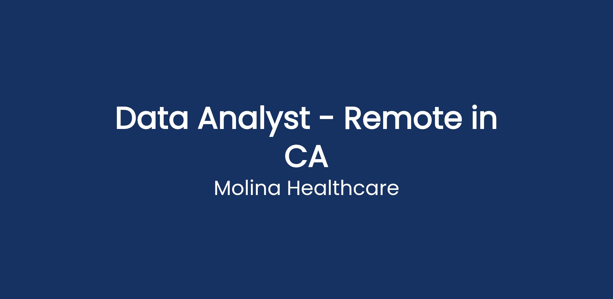 To all current Molina employees: If you are interested in applying for this position, please apply through the intranet job listing.