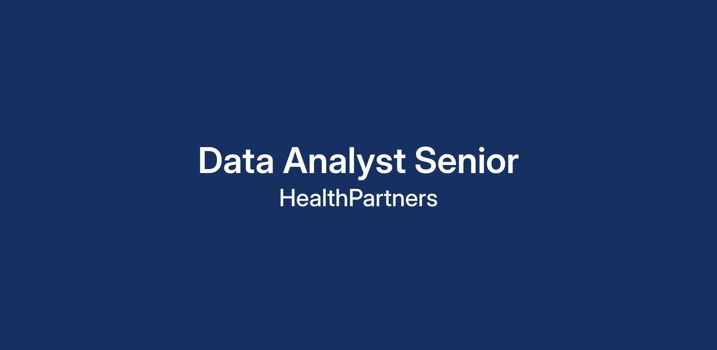 DescriptionHealthPartners is hiring Senior Data Analyst. Our mission is to provide simple and affordable healthcare. HealthPartners teams use data to improve patient and member experience, improve health, and reduce the per capita cost of health care. HealthPartners data analysts are responsible for driving adoption and use of data and analytic services and products. Data analysts work in collaborative scrum teams with developers, data scientists, and data engineers, and may share accountabilities in order to achieve sprint goals. They maintain a working knowledge of a business domain and its associated data, and provide visualization, analysis, validation, and consultation services. Together with their teams, they work on building scalable solutions to extract knowledge from data, and deliver that knowledge as needed and at scale.