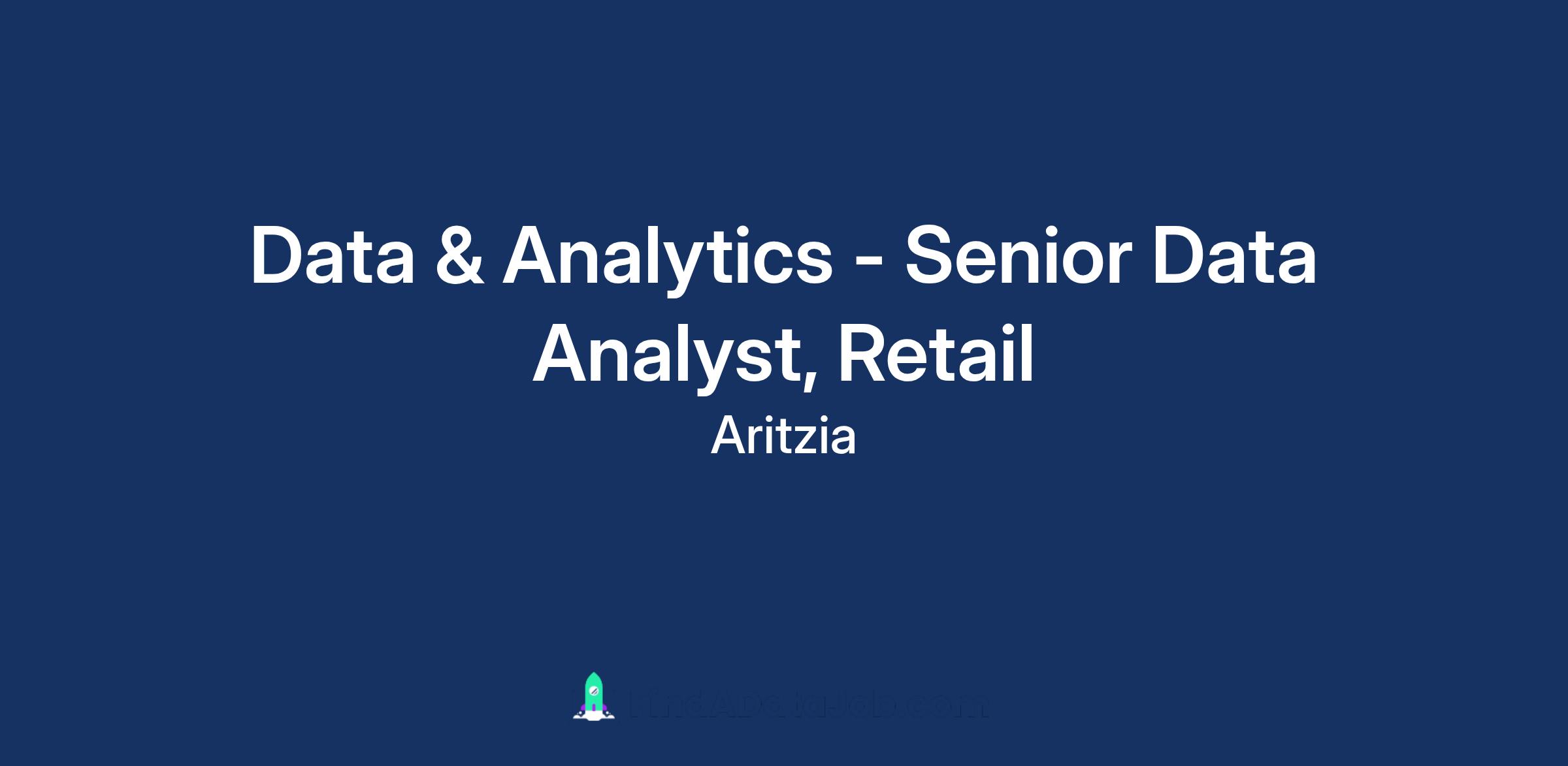 Aritzia is growing and our Data & Analytics team is growing with it. This is a unique opportunity to be part of the team responsible for bridging the gap between business strategy and data. As a Sr. Data Analyst, Retail, you will combine your deep understanding of who our clients are with your passion for data and masterful analytics skills to uncover opportunities that will enable Aritzia to create long lasting relationships with clients. With the skills you gain in this role, the opportunities are endless β from a rewarding career in Analytics to continued growth and development with Aritzia.