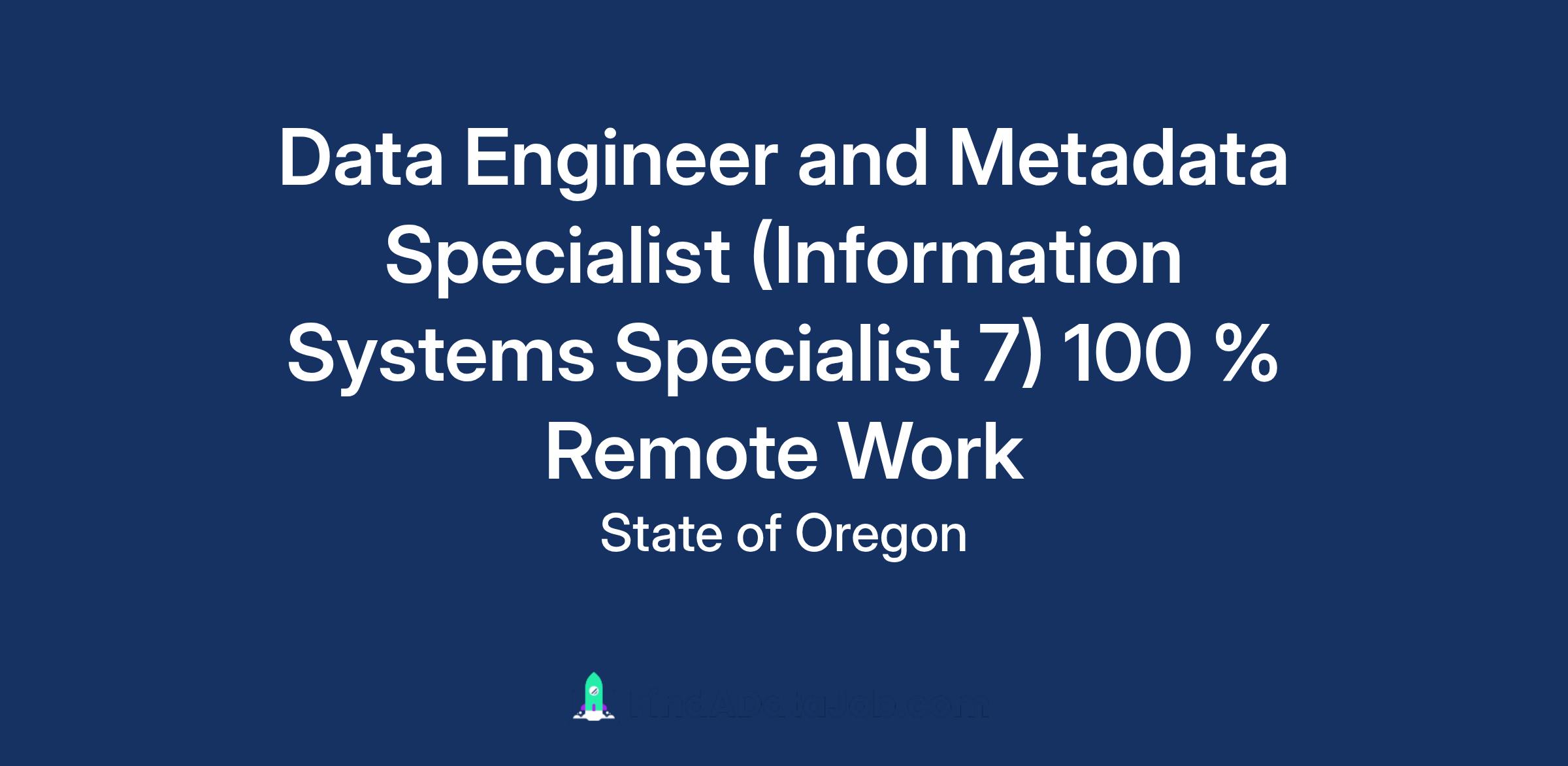 Opportunity Awaits, Apply Today!Β - Data Engineer and Metadata Specialist (Information Systems Specialist 7) 100 % Remote Work