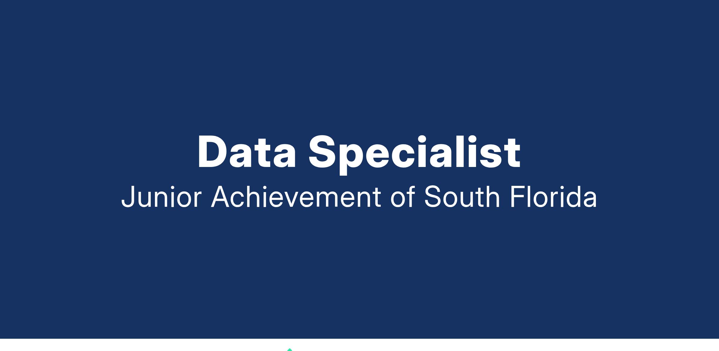 The Data Specialist is responsible for the data integrity of all data relating Junior Achievement of South Floridaβs educational programs. The Data Specialist reports directly to the Program Operations Manager and works closely with Program team members. This includes tasks such as data entry, data cleansing, data analysis, and data visualization. The Data Specialist must be able to work independently and as part of a team and must have excellent attention to detail.