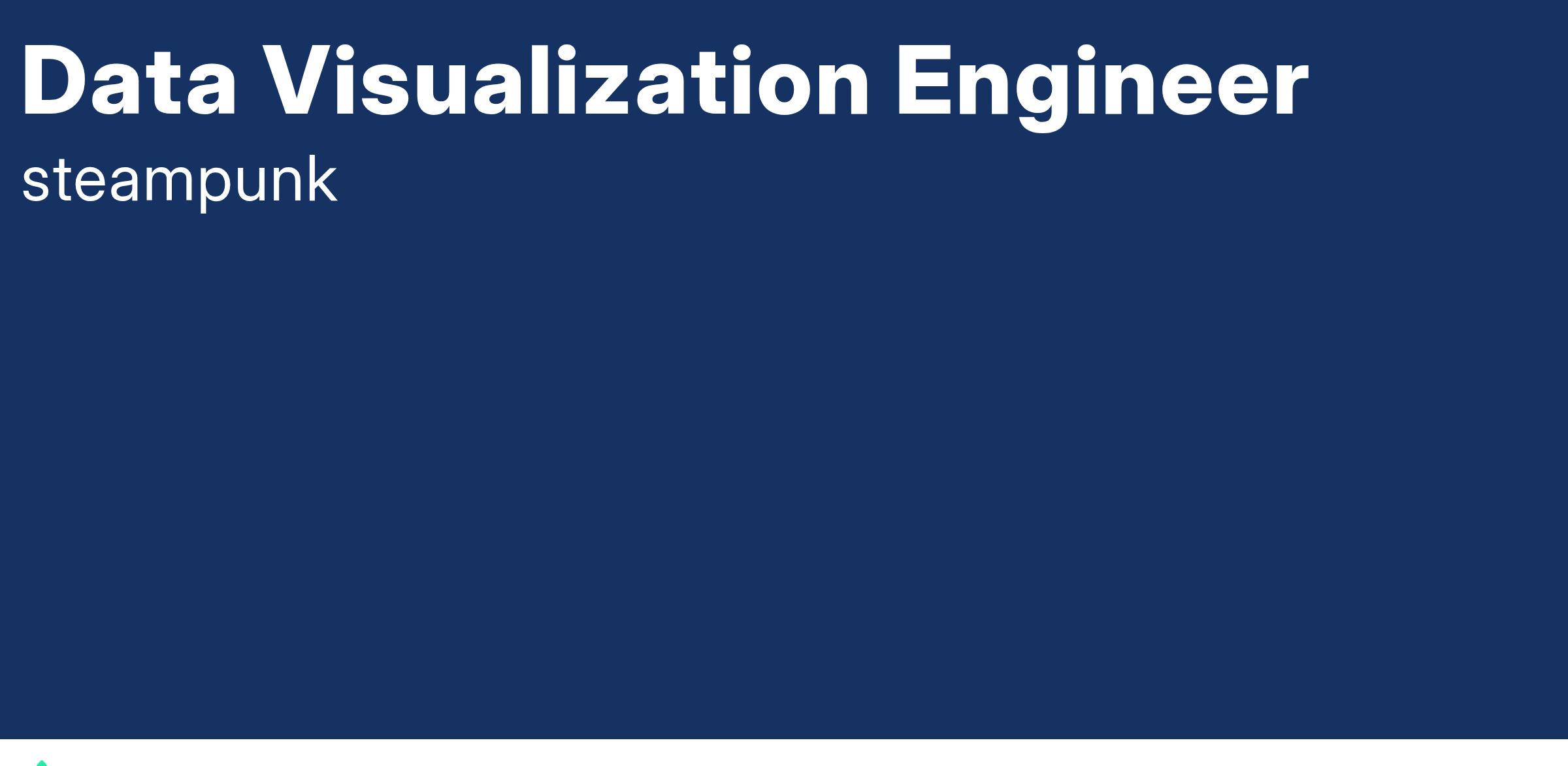 Steampunk wants you to join our awesome team as Data Visualization Engineer. In this role you'll be working with a large team of Steampunk and clients to identify data sources, tools, and mission challenges that can all be brought together to create decision-supporting insights and information. Your main goal in this work is to use the data that we have as a team and client base to provide meaningful information and representations of data to enable our client to make better and quicker decisions. We are looking for more than just a "Data Visualization Engineer", but a technologist with excellent communication and customer service skills and a passion for data and problem solving.