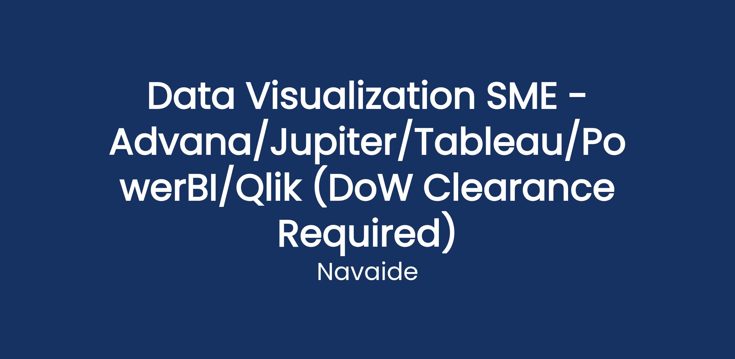 Position: Visualization Specialist (Advana/Jupiter/PowerBI/Tableau/Qlik) - DoW Clearance Required