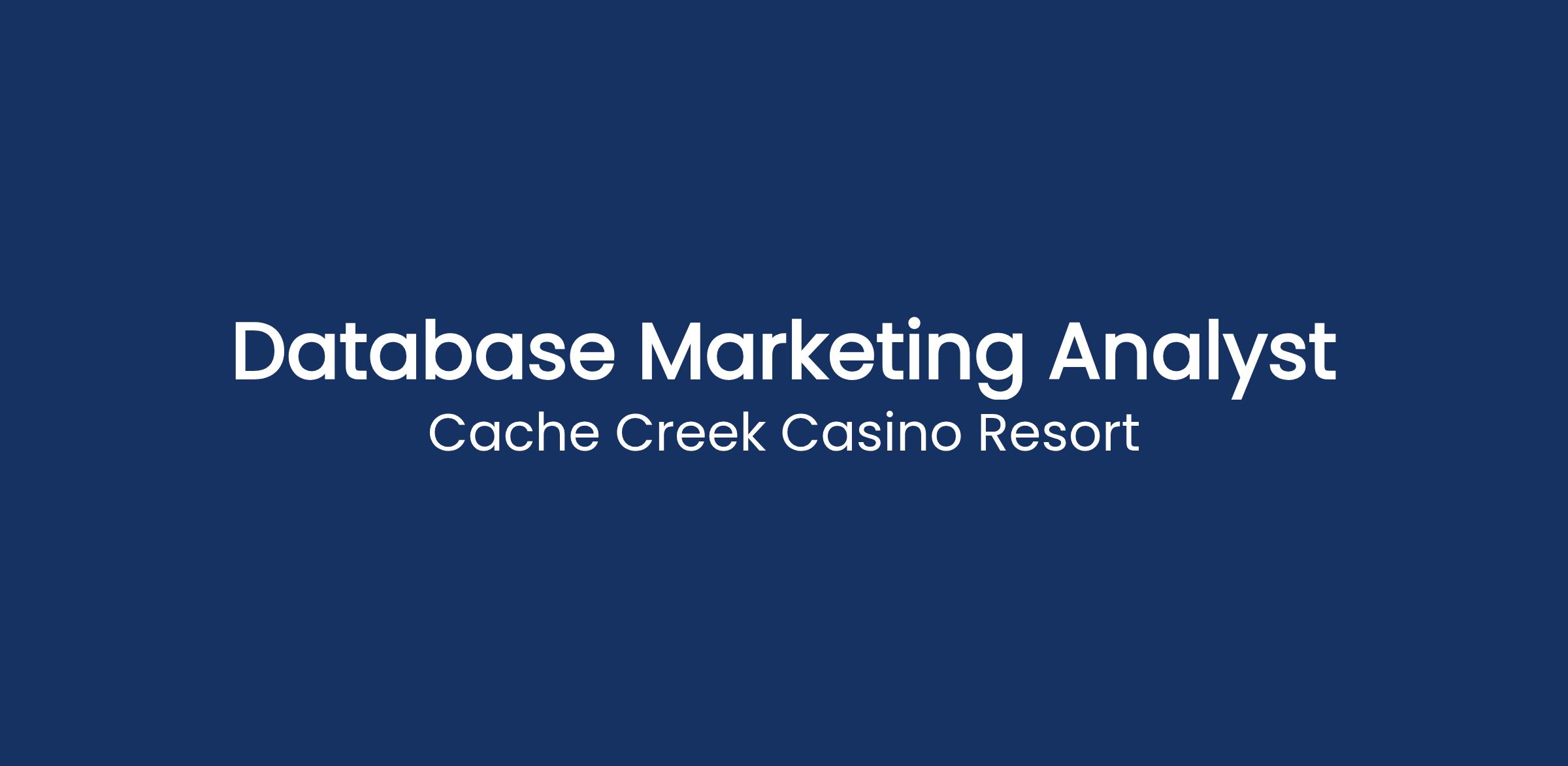 The Database Marketing Analyst will use data to highlight database / consumer trends, understand offer performance and reinvestment strategies, and deliver clear, actionable recommendations to improve profitability and enhance guest experience at Cache Creek Casino Resort. This role requires advanced analytical skills, excellent communication, and a high degree of curiosity.