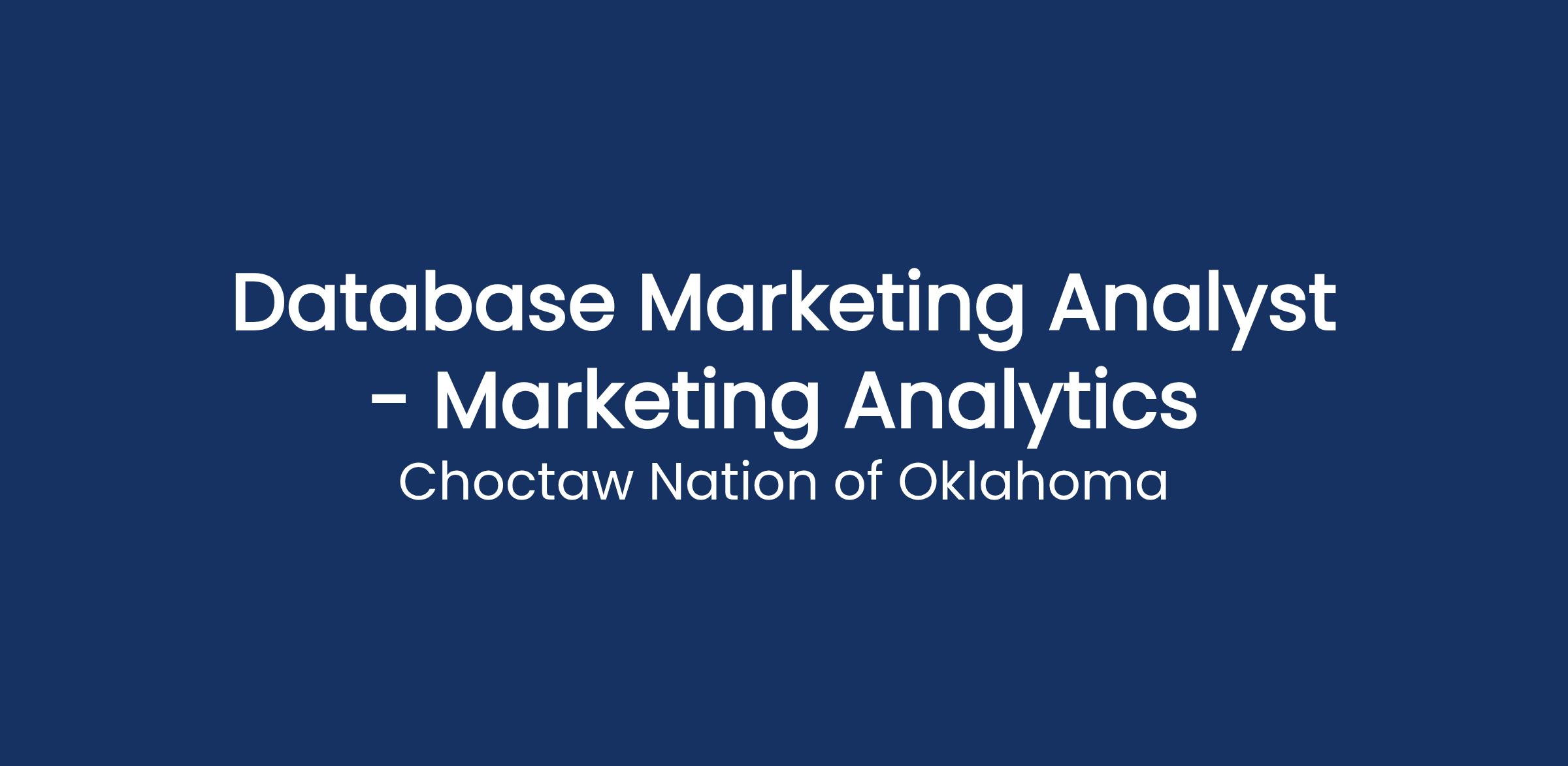 DescriptionJob Purpose or Objective(s): The Database Marketing Analyst provides detailed reporting on player and database trends and generates applicable data sets that can be used for marketing efforts (including Direct Marketing).聽 You are also responsible for creating Pro and Post Forma analysis of promotions and events and communicate those findings to management.聽 The Database Marketing Analyst is also responsible compiling trend analysis and communicating any areas of success or concern to management.聽You will report to the Marketing Analytics Manager.