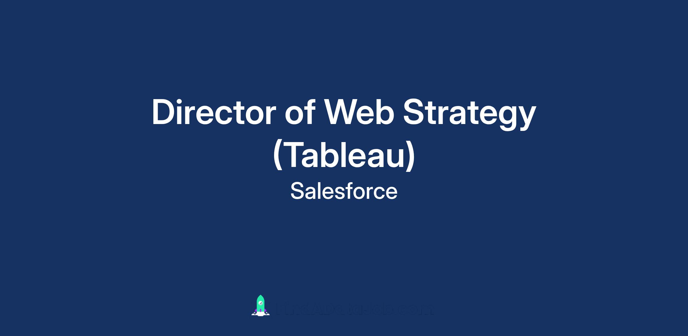 We are seeking a Director of Web Strategy to lead the development and execution of comprehensive digital web strategies that drive user engagement, optimize customer experience, and achieve business objectives for the Tableau and Analytics business (including CRMA) at Salesforce. This role combines analytical thinking with creative problem-solving to enhance our web presence and digital customer journey. The role will oversee the broad analytics category at Salesforce, bringing a unifying strategy for Tableau.com and Salesforce.com analytics web pages.Β