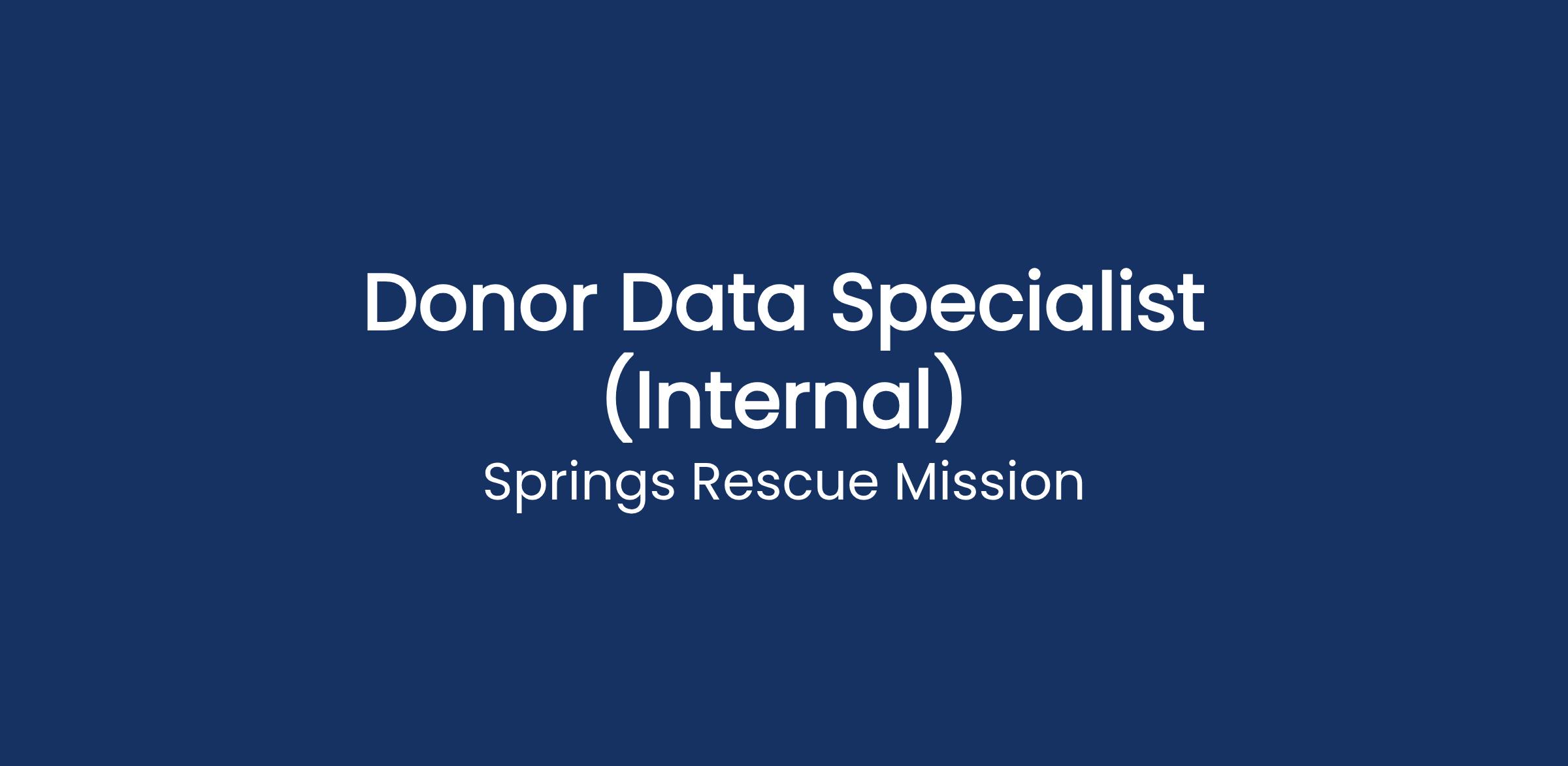 Springs Rescue Mission considers every position one of ministry and a vital and valued part of our team. Therefore, it is essential that all employees of SRM have a personal relationship with Jesus Christ and subscribe to our Statement of Faith and Core Values. The Donor Data Specialist reports to and supports the Advancement Department by developing and managing internal processes, software, data and business intelligence to maximize Springs Rescue Missionβs stewardship of donor relationships and resources. This position works to create systems that measure metrics tied to fundraising success and helps teams determine strategic audiences for messaging and relationship-building. In addition, this role supports Advancement by overseeing administrative support for CRM software to help teams stay focused on external relationships.