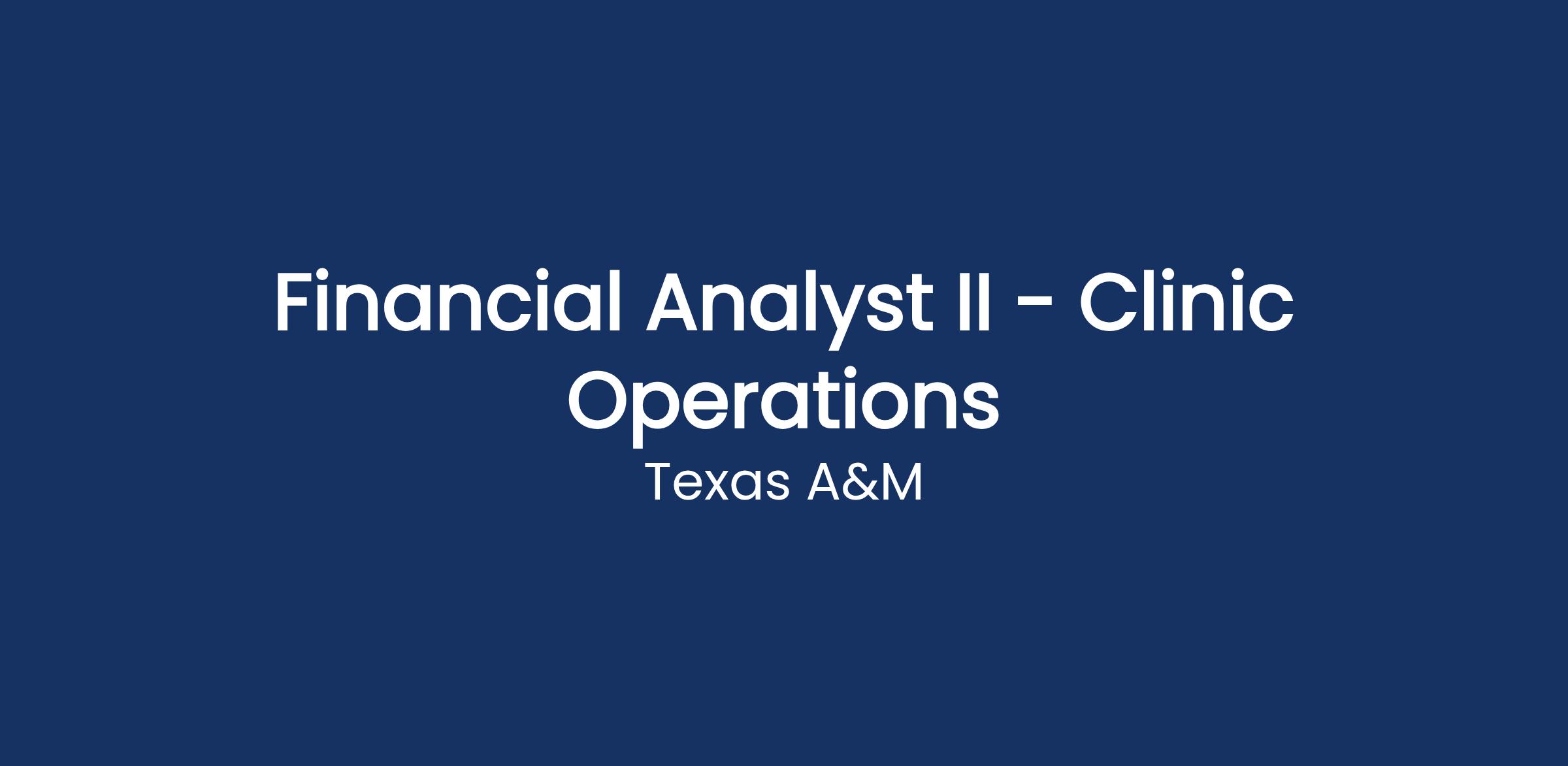 Financial Analyst II - Clinic OperationsAgency