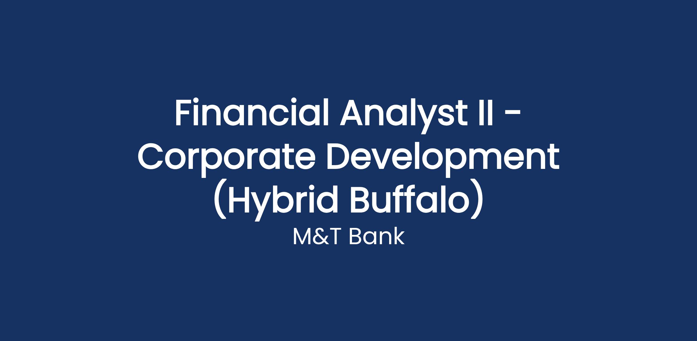 Corporate Development works closely with M&Tβs business units and senior management to ensure a coordinated and consistent approach to the merger and acquisition (M&A) process. This role primarily focuses on financial analysis in support of potential internal and external capital investment opportunities through valuation, risk assessment, and deal structuring; as well as, peer analysis regarding performance, merger-related activities, and capital actions, to assist senior management in implementing the bankβs strategy. In addition, the person in this role may be asked to conduct highly technical research and analysis of projects to provide senior management with definitive financial data and advice for their use in setting and realizing strategic objectives.