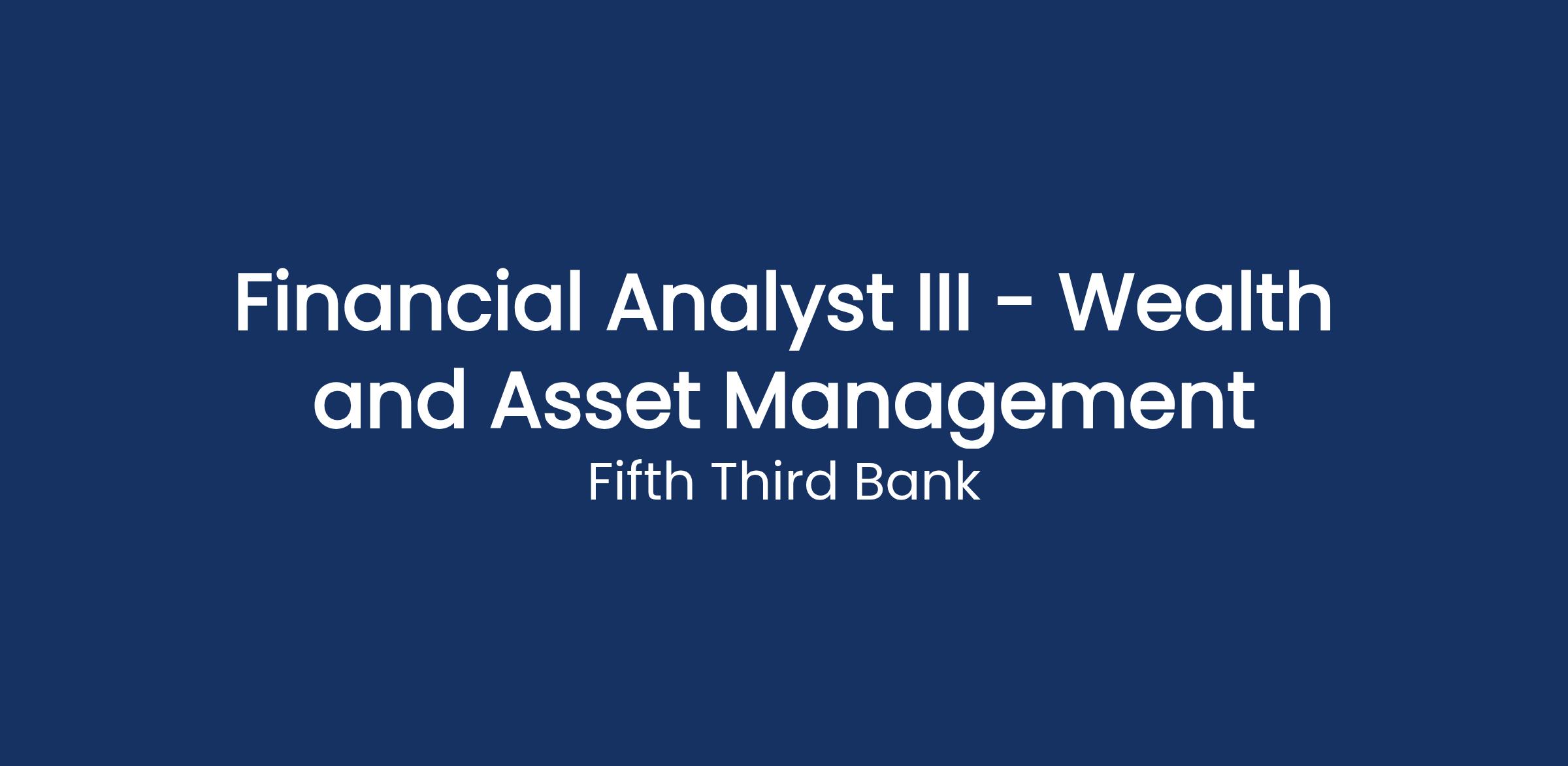 Financial Analyst III - Wealth and Asset ManagementAt Fifth Third, we understand the importance of recognizing our employees for the role they play in improving the lives of our customers, communities and each other. Our Total Rewards include comprehensive benefits and differentiated compensation offerings to give each employee the opportunity to be their best every day.