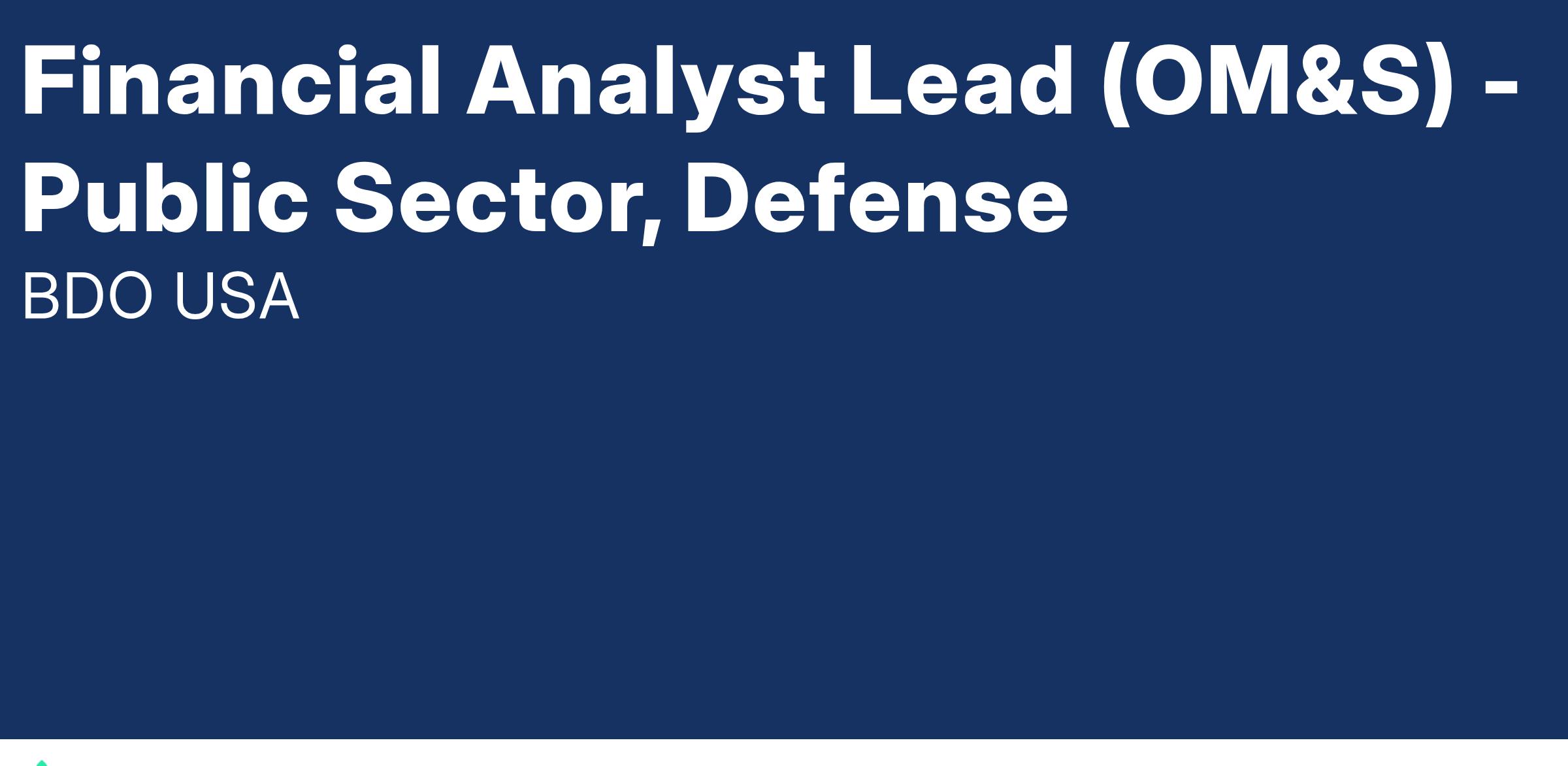 BDO is seeking a manager level professional to lead and support project delivery activities for Department of Defense agencies. The ideal individual in this position will possess Operating Materials & Supplies (OM&S) or other Inventory & Related Property experience with strong knowledge in Federal financial reporting, financial statements, accounting requirements, USSGL, Federal posting logic, transaction codes, and be able to execute complex financial data analysis. This role will also be responsible for supporting and partnering with leaders within the Practice to manage or support business development, practice development, and/or project delivery activities, along with day-to-day client delivery and relationships with clients on Public Sector engagements. This role may also be involved in direct supervision of staff and performance management.