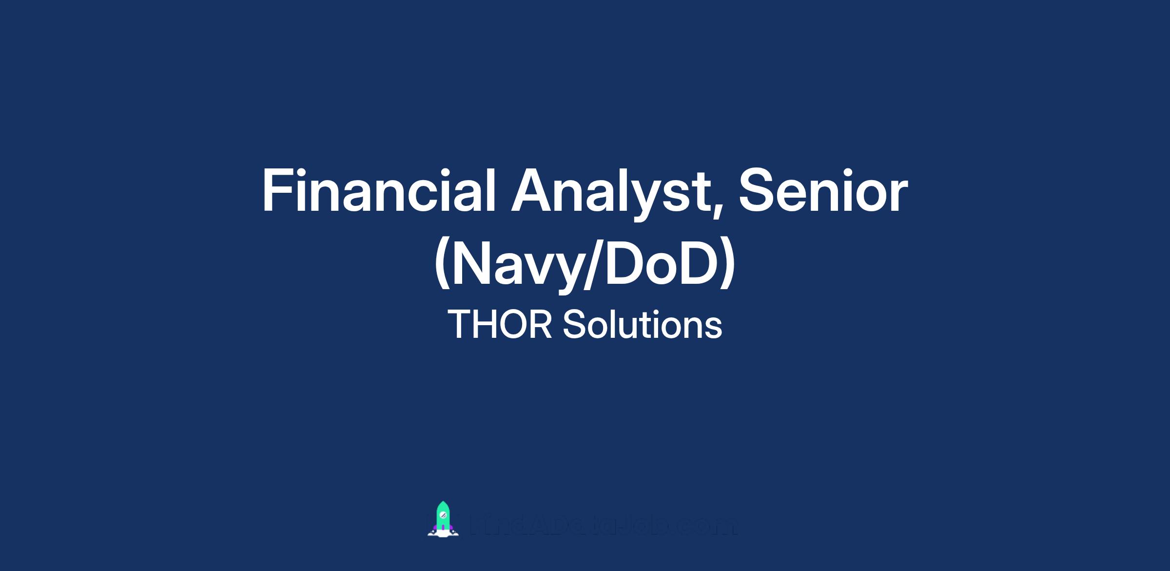 THOR Solutions is actively seeking a senior level Financial Analyst with strong experience in NAVSEA/Navy financial systems and processes to provide diverse program and financial support services to Naval Undersea Warfare Center Division Newport (NUWCDIVNPT)βs Code 34, located in Middletown, RI. An ideal candidate will have significant prior experience providing financial support in a NAVSEA environment and strong proficiency with financial roles in the Navy Enterprise Resource Planning (Navy ERP) tool.