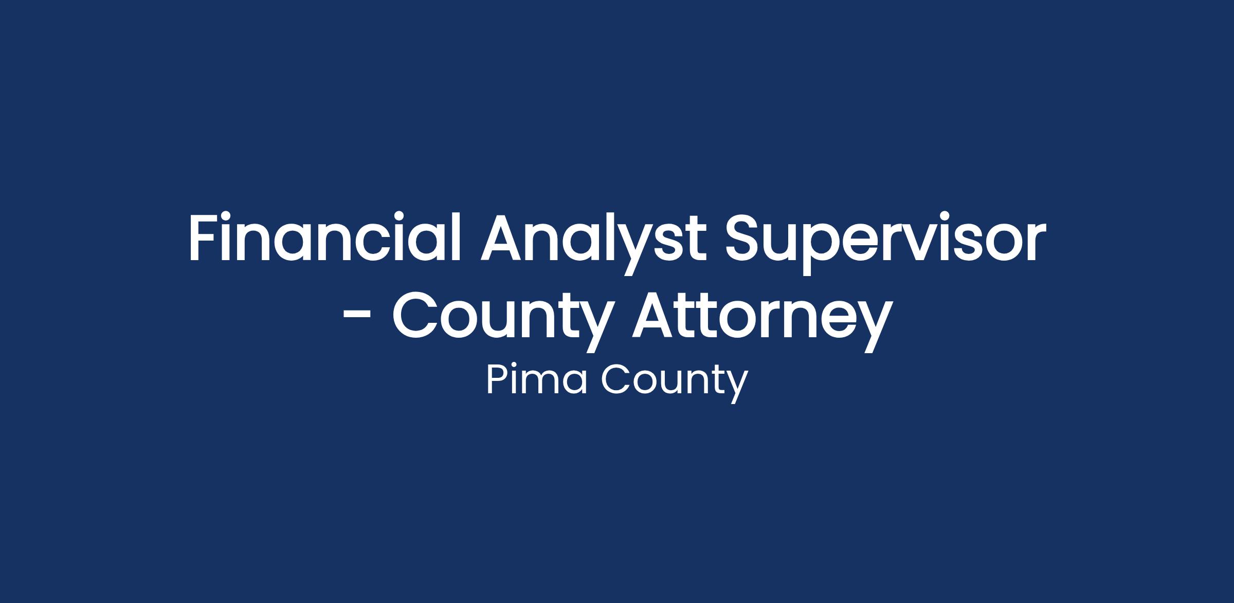 The Pima County Attorney’s Office (PCAO) is seeking a motivated professional to join its Finance team. The Financial Analyst Supervisor for the County Attorney supervises the daily activities of a team of professional financial analysts and is responsible for overseeing and participating in analysis activities involving the County Attorney’s annual operating budget.
