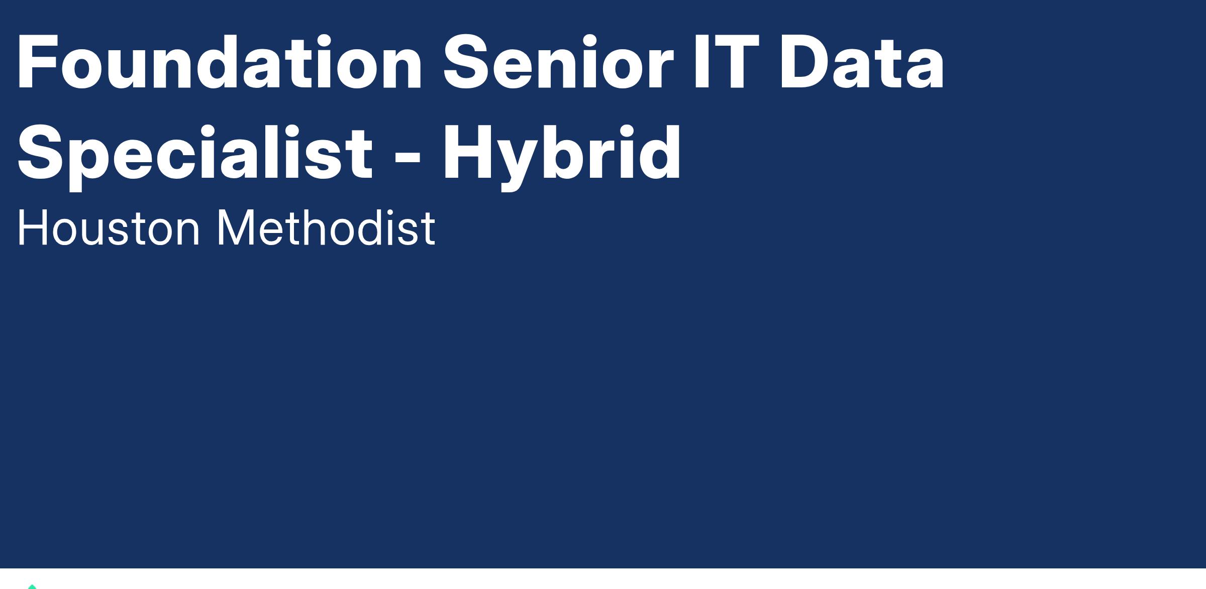At Houston Methodist, the Foundation Senior IT Data Specialist position is responsible for supporting an enterprise-wide business intelligence and analytics framework for the foundation that will provide the organization with solutions for effective decision-making and.Β This position utilizes critical thinking, attention to detail, and effective communication skills and collaborates effectively with teams to consult with business area leads to generate solution recommendations and technology needs for fundraising.