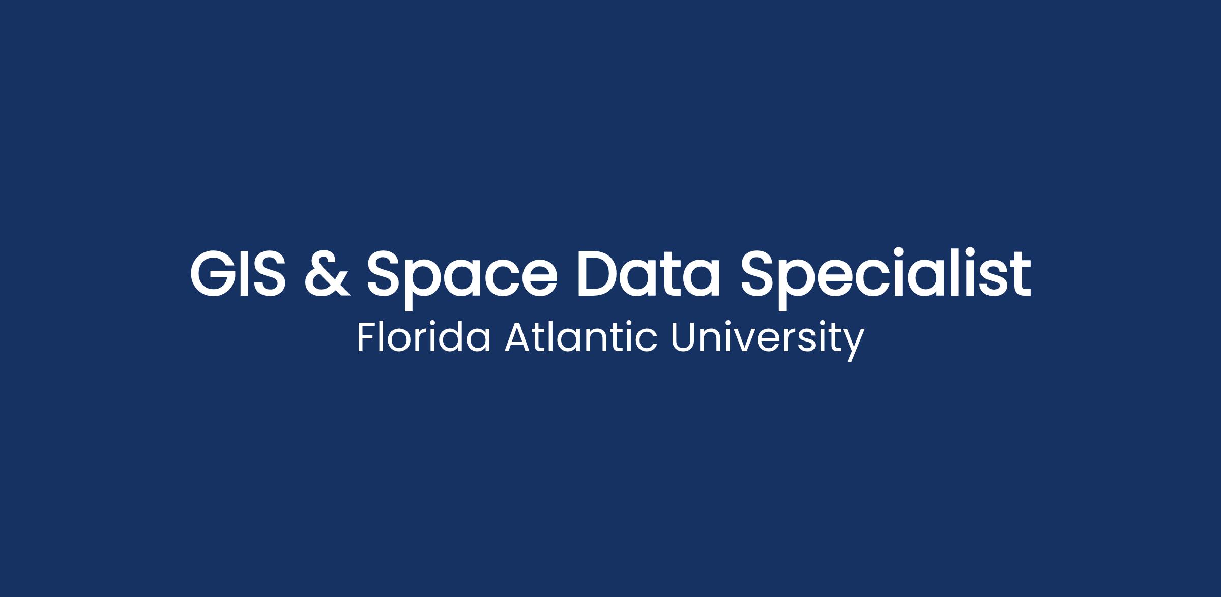 Florida Atlantic University is seeking a GIS & Spatial Data Specialist - Boca Raton, FL.