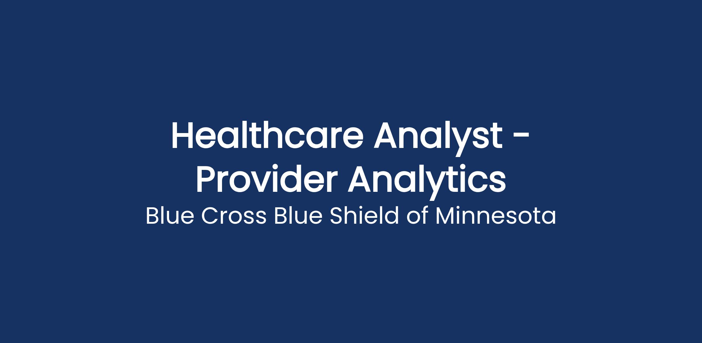 Blue Cross and Blue Shield of Minnesota is seeking a skilled Healthcare Analyst to join our Provider Analytics team. In this role, you will collaborate closely with business partners to extract and analyze data, gather reporting requirements, and build clear, actionable reports that support strategic decision-making across the organization.