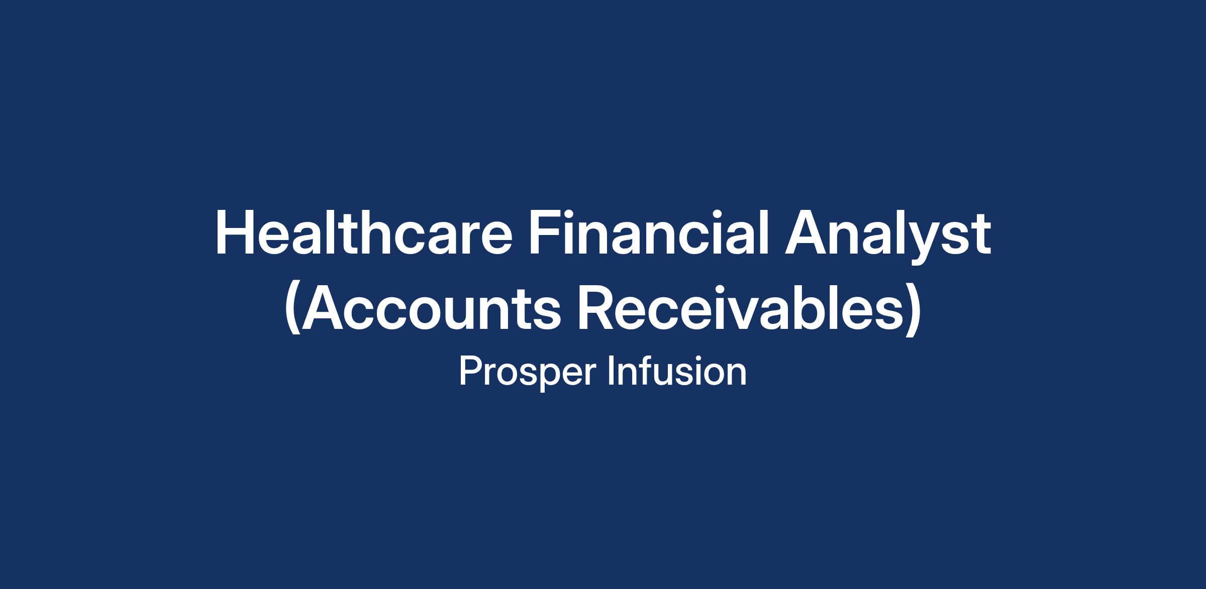 Prosper Infusion is looking for experienced and motivated Healthcare Financial Analyst (AR) to join our dynamic team!