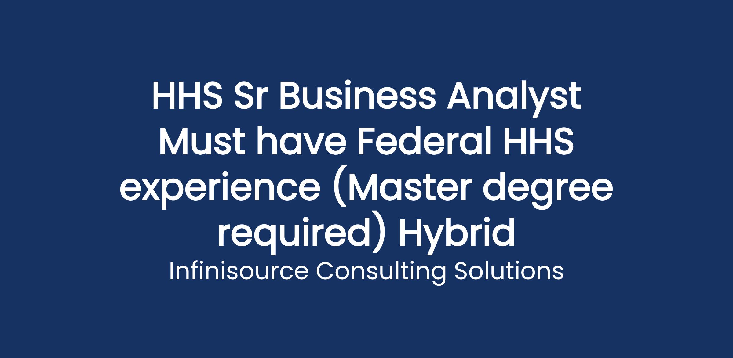 Position Title: Remote Business Analyst For FBI (PRIME) Must have HHS experience