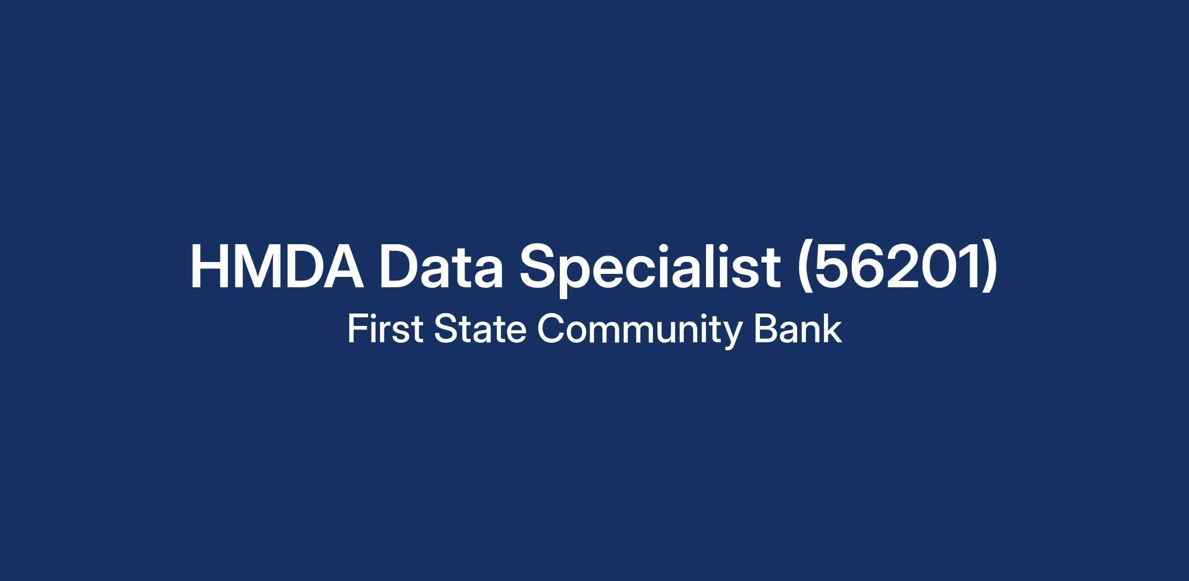 First State Community Bank is looking for a highly organized and meticulous candidate to fill the role of Regulatory Data Specialist. The Regulatory Data SpecialistΒ position will be responsible to assist with data collection as well as entering HMDA data into the appropriate reporting system.
