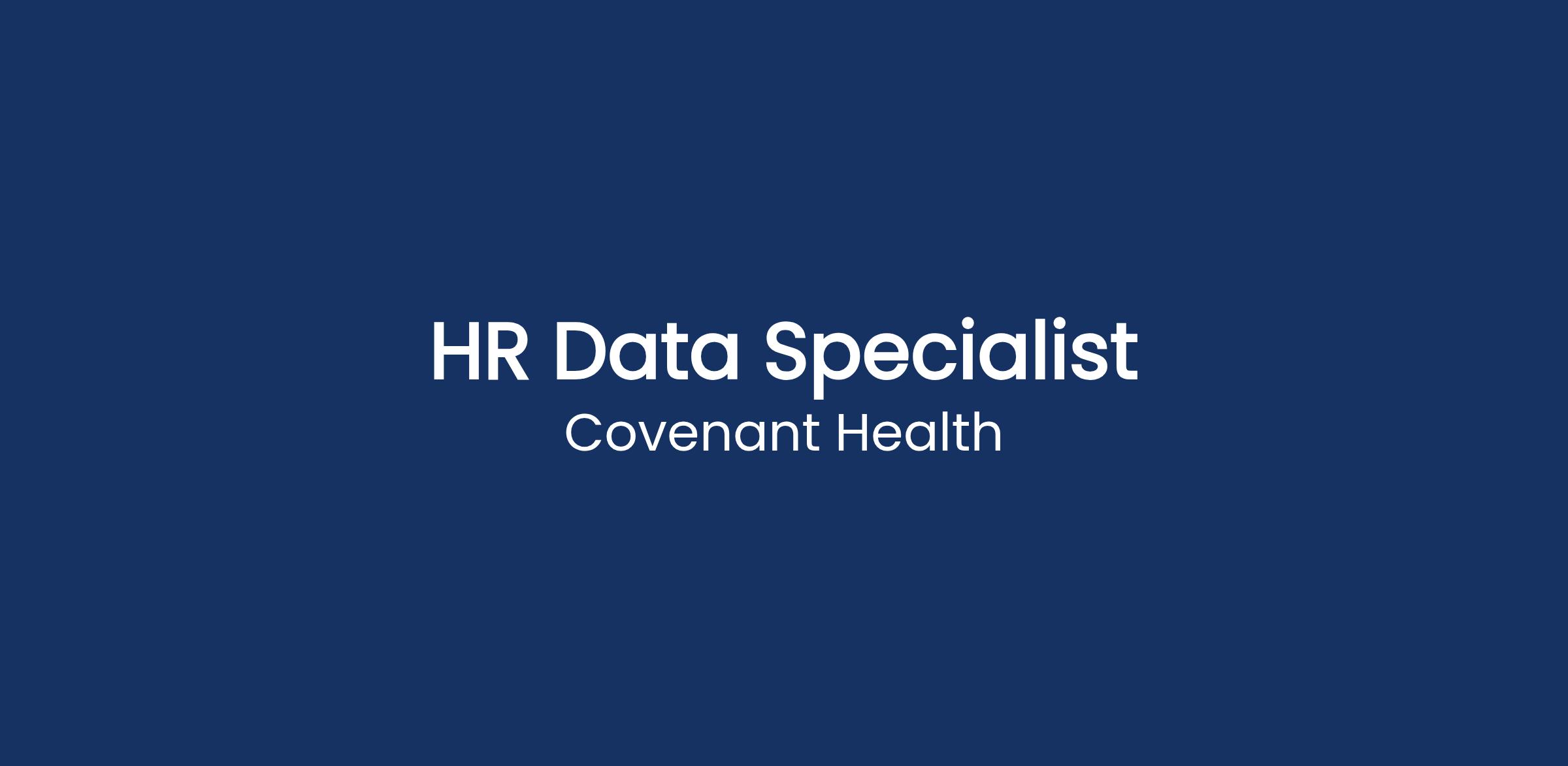 The Human Resources Data Specialist supports all Covenant facilities and Human Resources groups by providing high quality and timely data and exceptional customer service. This position is primarily responsible for conducting data audits, maintaining job descriptions, and maintaining compensation policies and programs for the organization. Other project work may be involved.