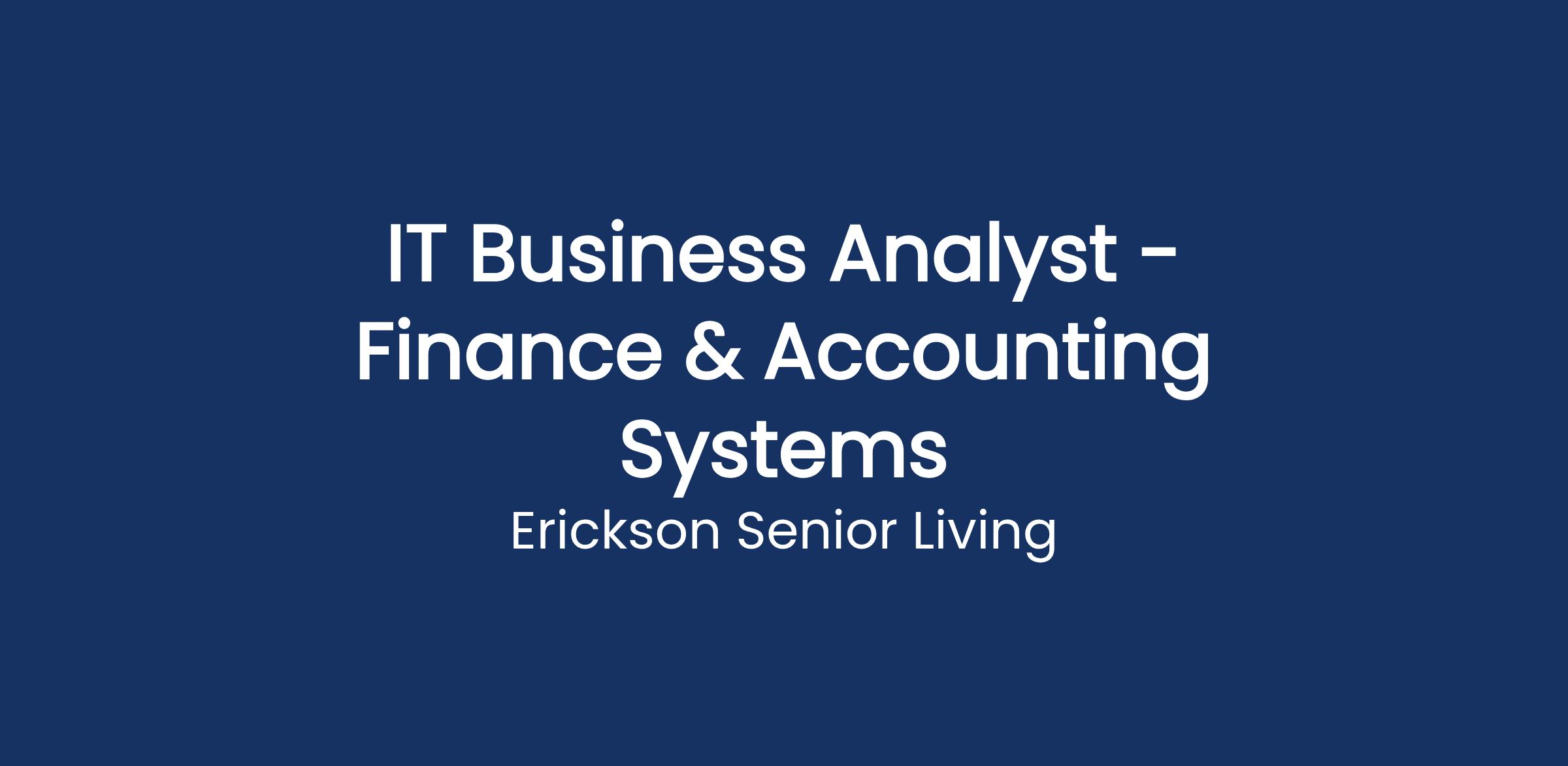 As the IT Business Analyst - Finance & Accounting Systems, you will serve as a strategic partner to Erickson's finance and accounting teams, supporting the financial operations of our 22+ senior living communities. In this role, you translate complex business needs into clear, actionable requirements that enable effective technology solutions and operational improvements.