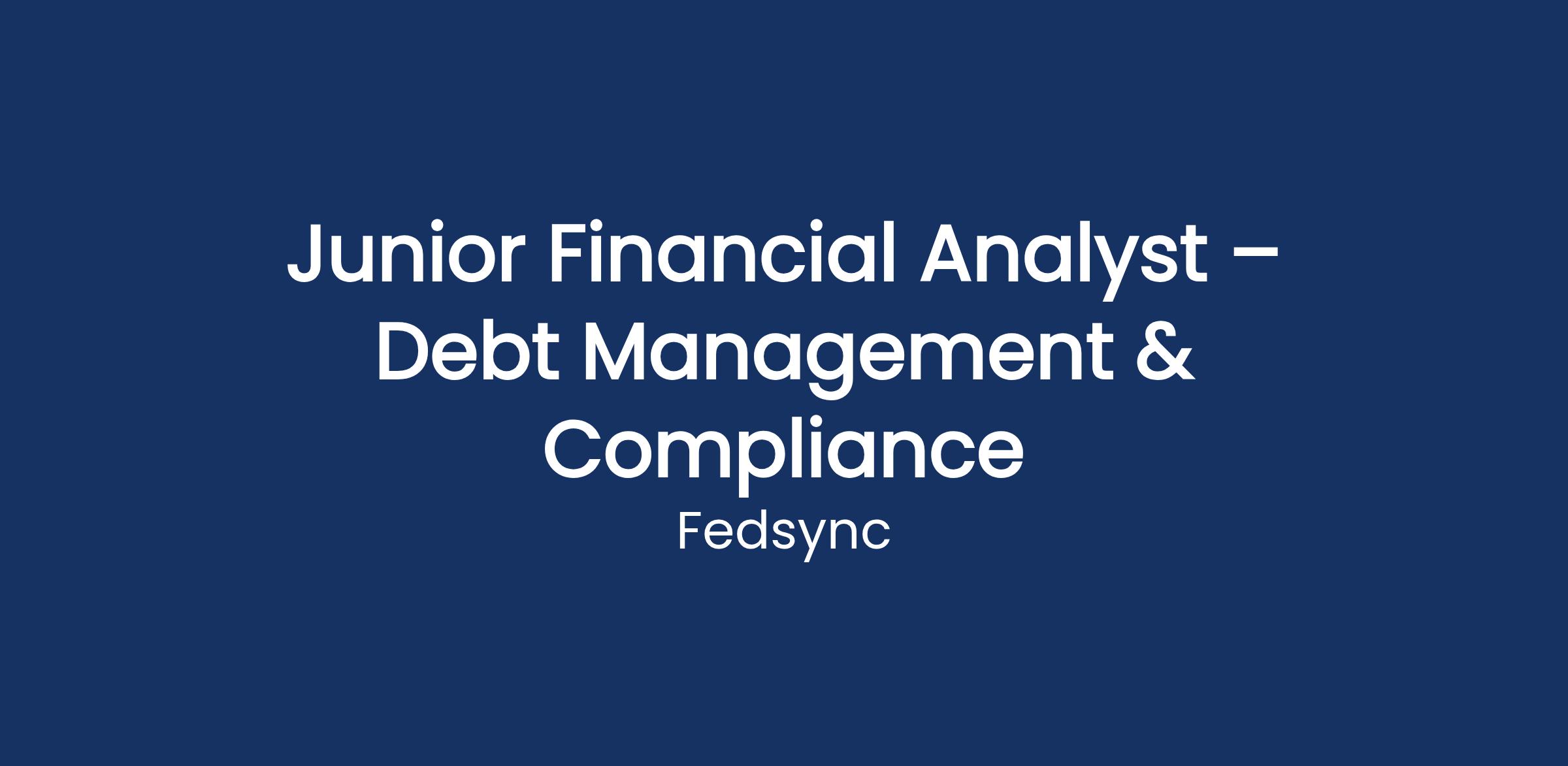 FedSync is seeking an experienced Junior Financial Analyst to provide comprehensive support in customer service, debt referral, financial management, paralegal, and debt collection services for federal and state organizations. The ideal candidate is detail-oriented, thrives in a fast-paced environment, and is capable of meeting critical deadlines.