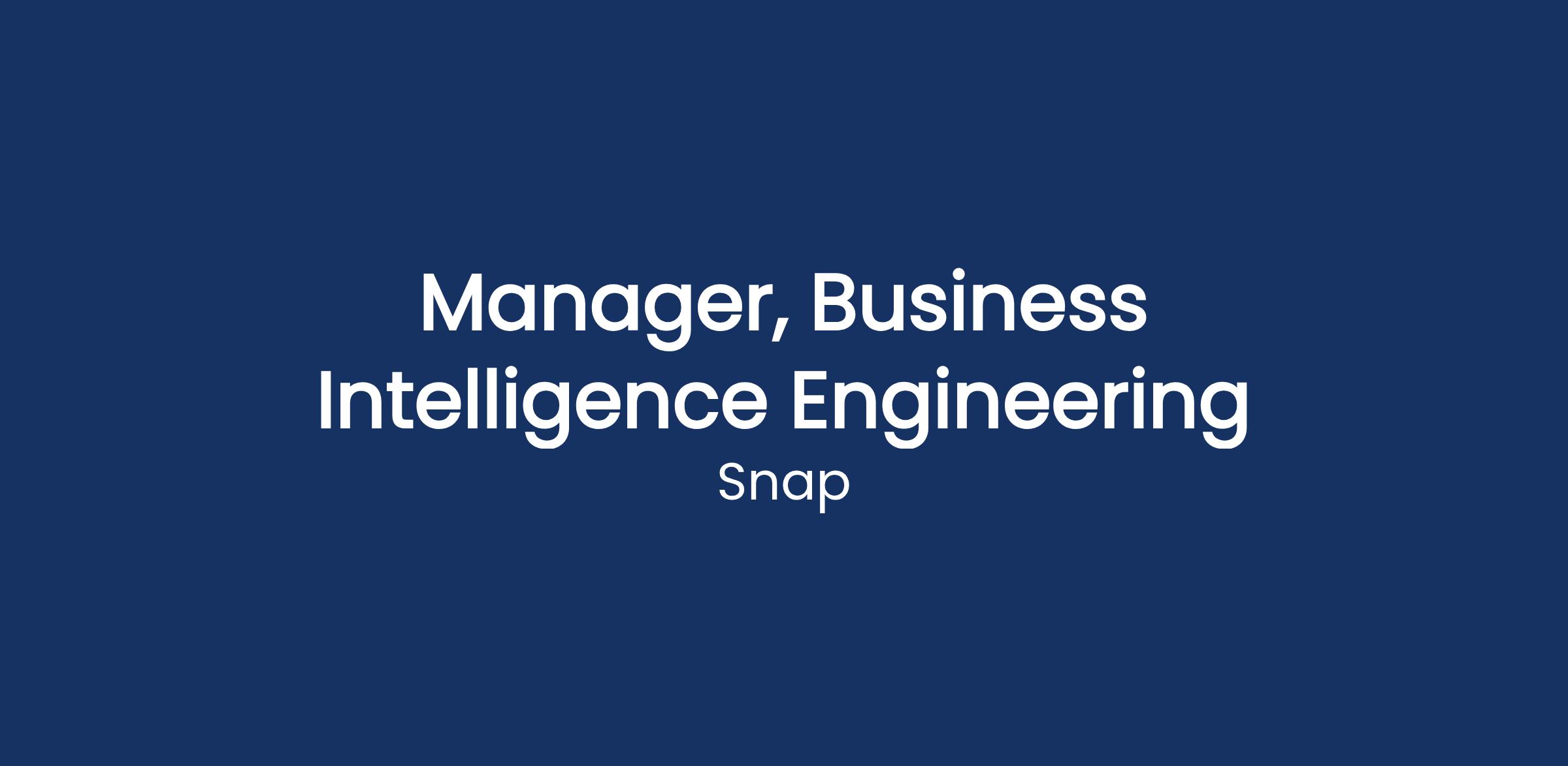 Weโre looking for a Manager, Business Intelligence Engineering to join Snap Inc!ย