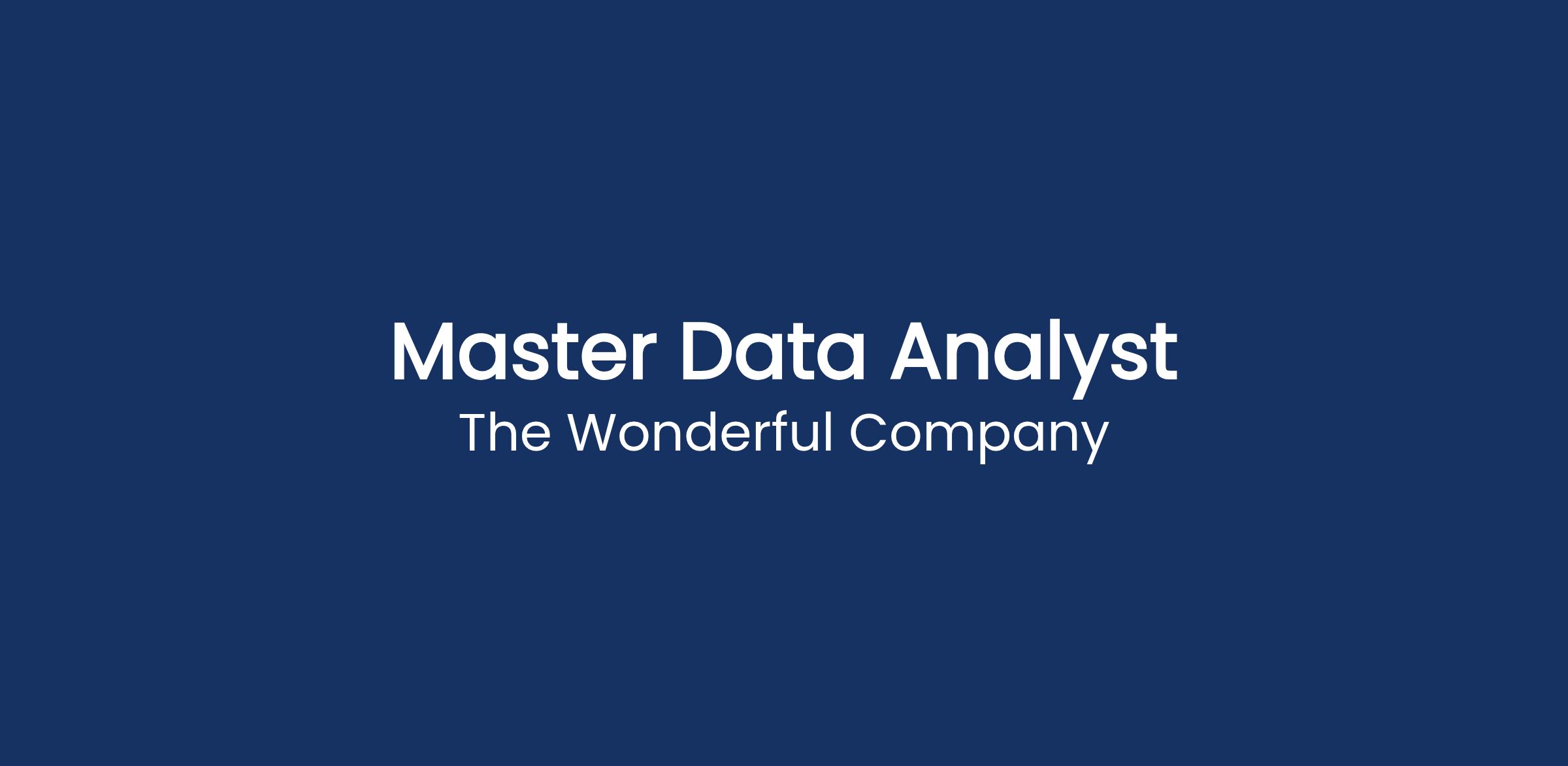 The Master Data Analyst is a valued team member who contributes to the day-to-day operations of the Wonderful Enterprise master data management team. This role will work under the supervision of the Master Data Manager and alongside a group of Master Data Analysts dedicated to the creation and maintenance of master data objects across The Wonderful Company businesses while strictly adhering to Standard Operating Procedures and enforcing data quality.