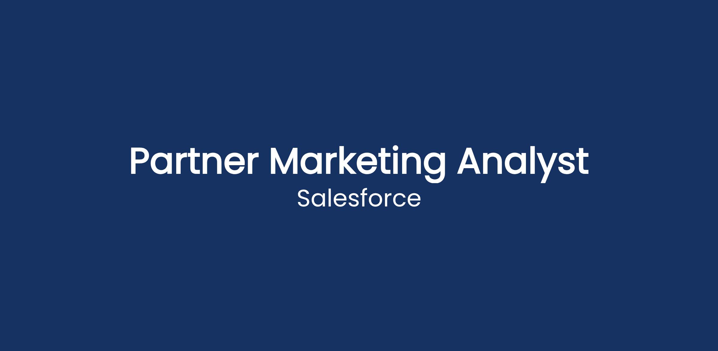Salesforce is seeking a Partner Marketing Analyst to make an impact on its growing partner ecosystem. Weβre looking for a dynamic, detail-oriented marketer with strong project management, product marketing, and content development skills to support a variety of marketing initiatives with our most strategic Global System Integrator partners.