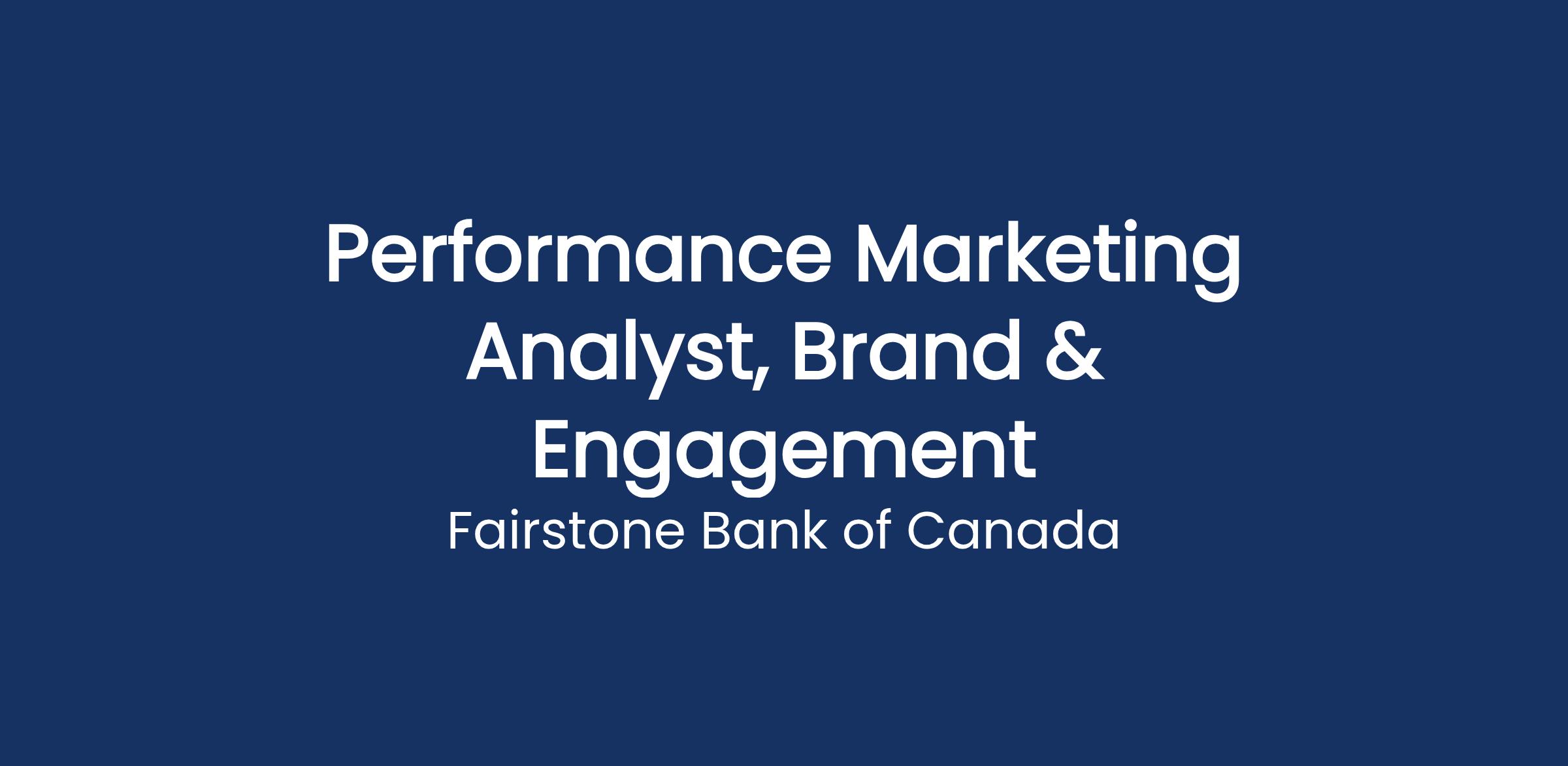 Fairstone is seeking a passionate, hard-working Performance Marketing Analyst, Brand & Engagement to join our growing Digital Marketing team currently consisting of 10 highly specialized, data-driven marketers.