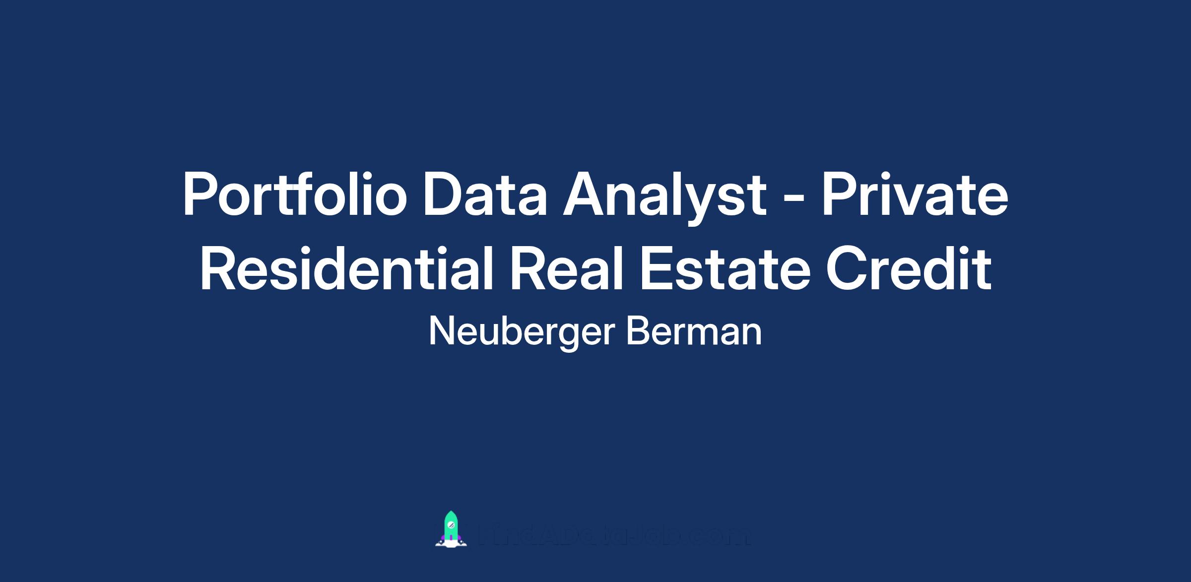 The Private Residential Real Estate Credit Strategies group is seeking a Portfolio Data Analyst to support its long-standing and growing $18+ billion-dollar private residential real estate debt business at Neuberger Berman.