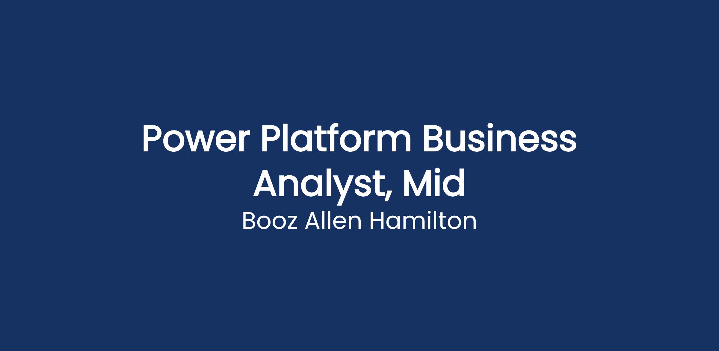 To transform in todayβs evolving digital world, organizations must harness the power of low-code applications to improve business processes, improve data quality, and drive efficiencies. Do you thrive on digging deep into complex data challenges and helping people solve problems? Do you enjoy making processes more efficient and automated? As a business analyst focused on the Microsoft Power Platform, you know how to apply your critical-thinking, business analytics, and technical expertise to improve processes and tools and develop applications and dashboards. If youβre ready to grow your industry knowledge and develop solutions for national security, thereβs a place for you at Booz Allen. Youβll help introduce and recommend new ideas that deliver deep visibility and insights while being part of a supportive team that roots you on.