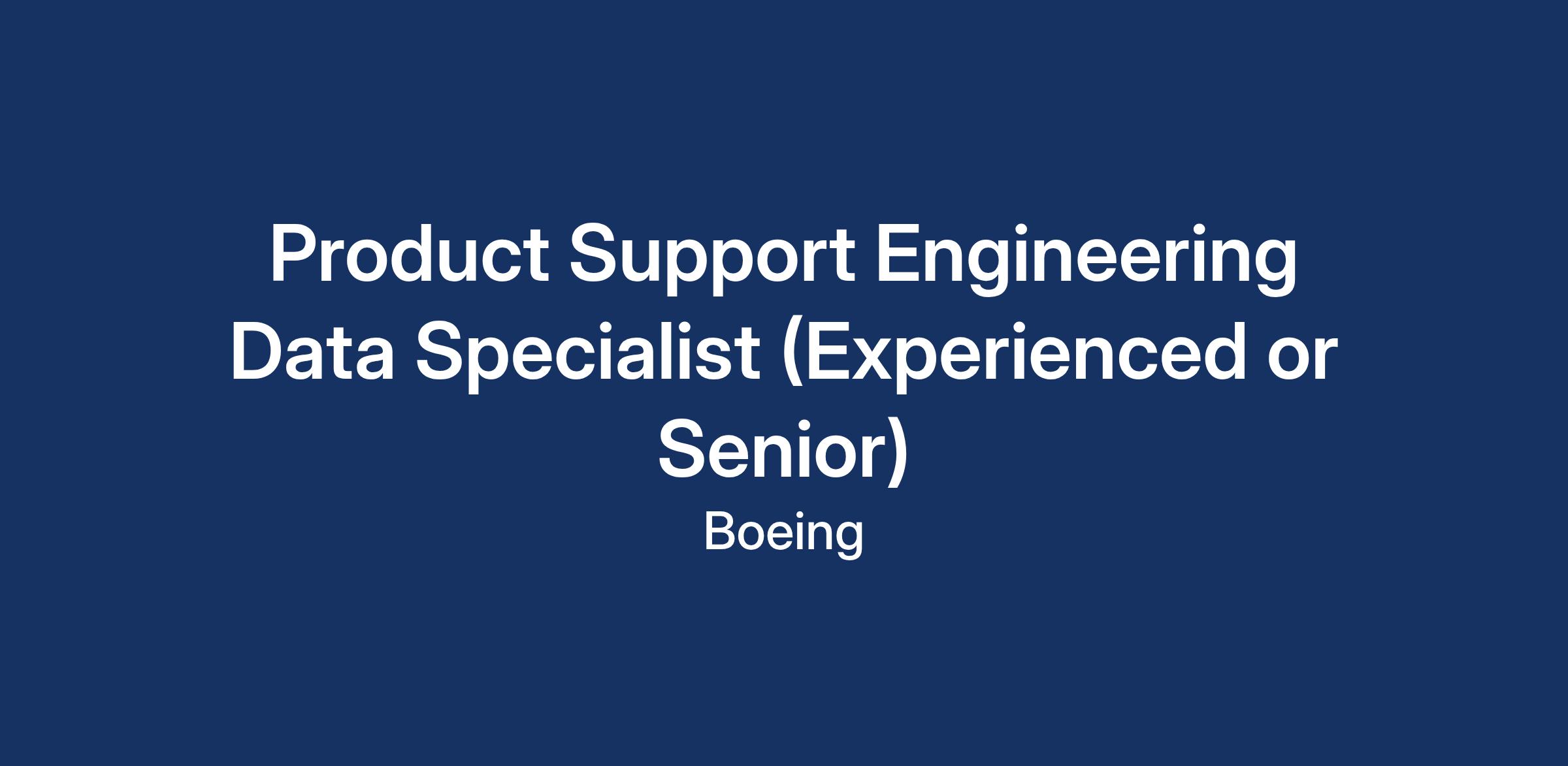 The Boeing CompanyBoeing Global Services (BGS) has an exciting opportunity for Product Support Engineering Data Specialists to support Boeing Defense, Space & Security (BDS) Air Dominance\Phantom Works.