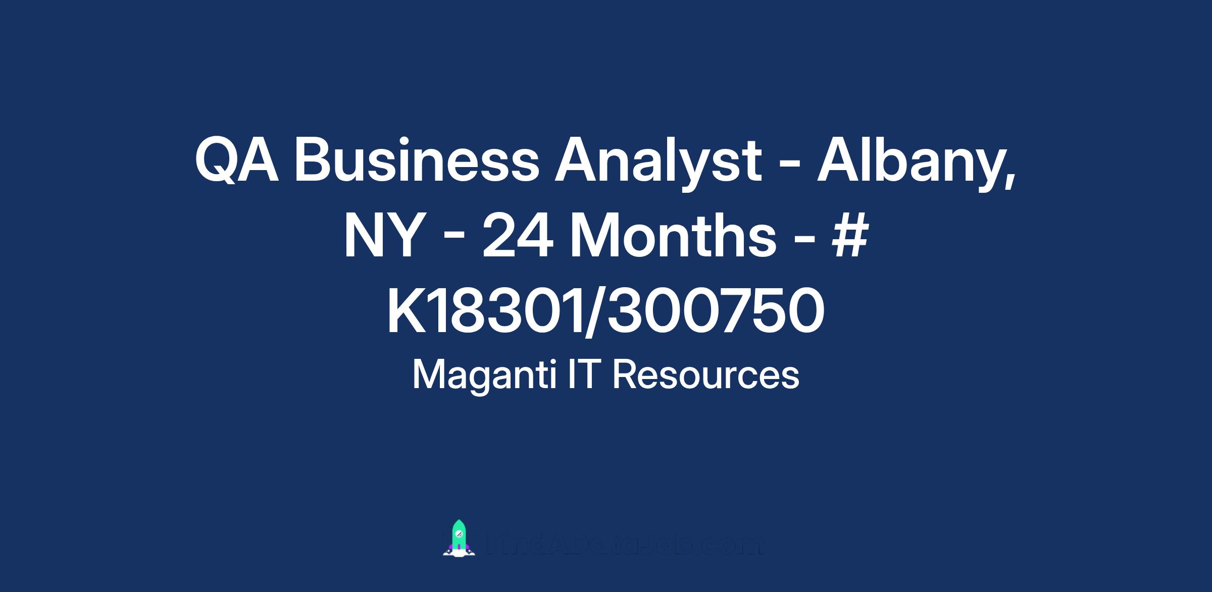 Title: QA Business Analyst - Albany, NY - 24 Months - # K18301/300750